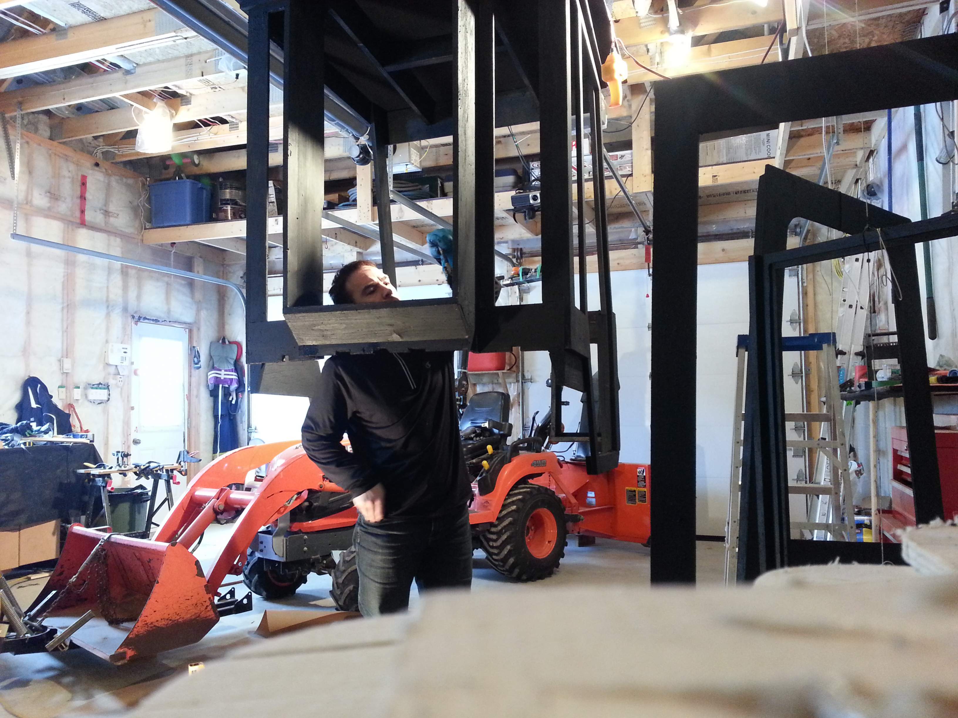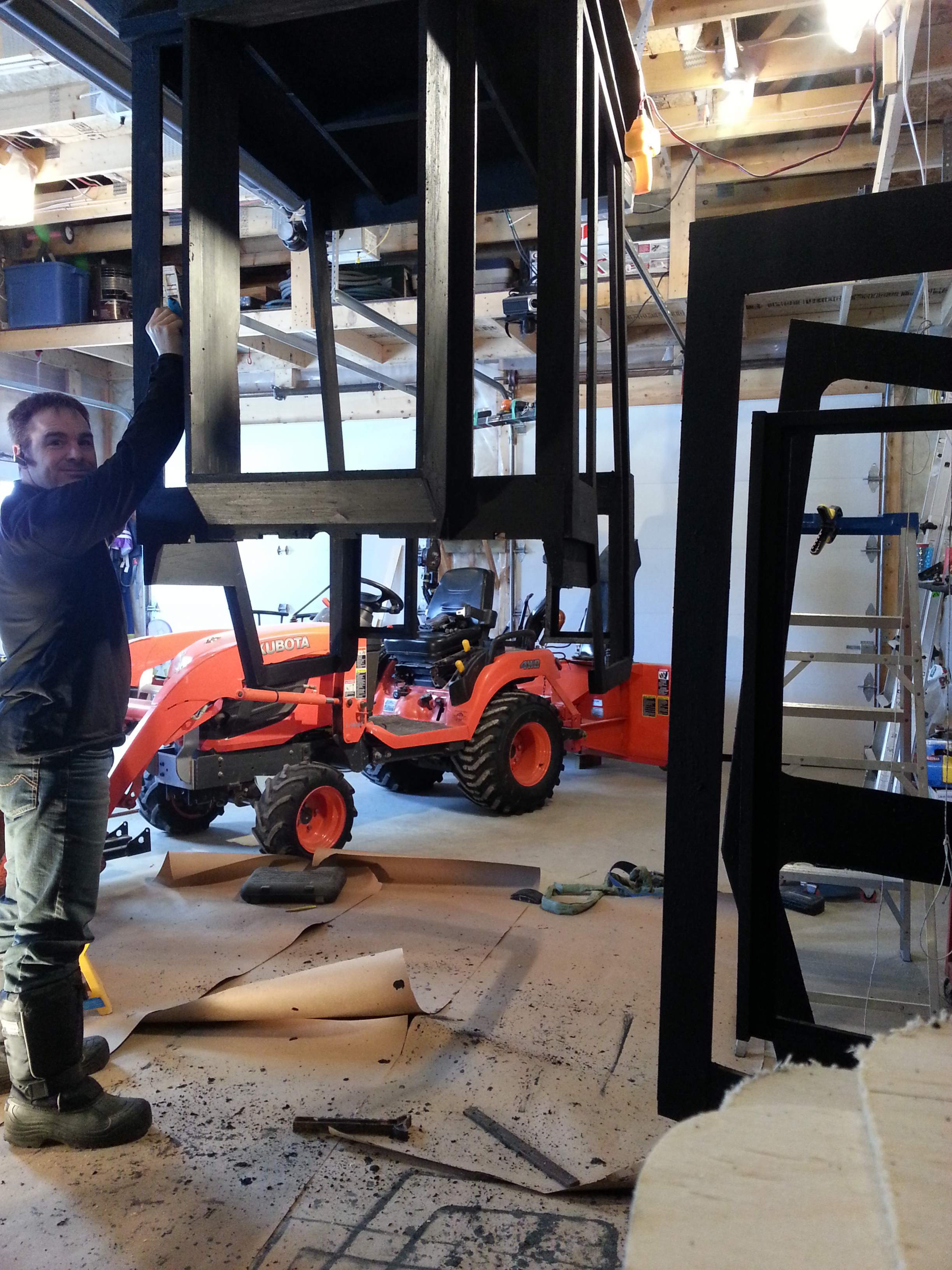 So with 400 hrs and several winters on my BX25 I figure it's time to do a DIY cab. I've been on here for some time reading and looking at what others have done and while I do like to work with metal I don't currently have a welder so decided to follow another member (RAECOREP and his $300 Cab) and do a wood build. I'm only one Saturday into the project yet but though I'd post some pics and let you see the progress along the way. I have several ideas in my head so hopefully they make it to the bench and on the cab. I have to say that already this is turning out to be an interesting project and I'm sure it's gonna pass the $300 mark, how far might just depend on my ideas. I'm hoping to keep this cab on all year long so I'm building it with the backhoe in mind. Thoughts and ideas welcome as I venture down this road! The pics of the plow (5' ATV) are from a parallel project to in some ways duplicate the BXpanded plow at a fraction of the cost. I live in Canada so shipping kills us, we have to do things ourselves!