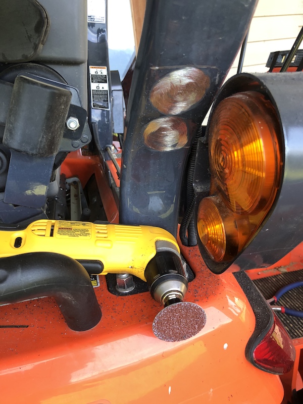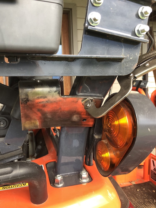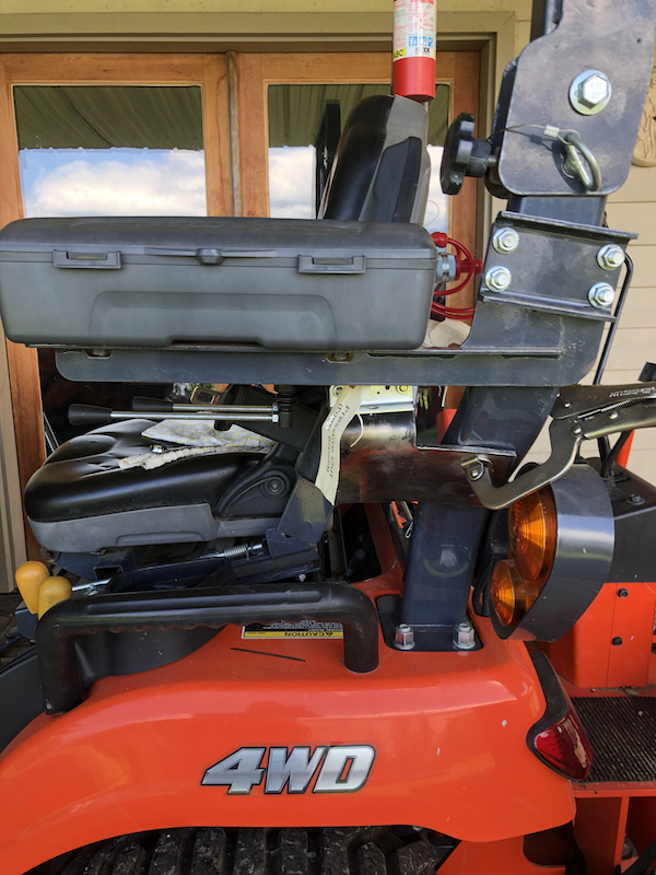 Got this far and realized the aux tool box is going to have to be moved up slightly so I can move the bracket up and outboard a bit to clear the seat. Not a lot of play here as I don't want to interfere with the ability to fold the ROPS. Cutting it close.