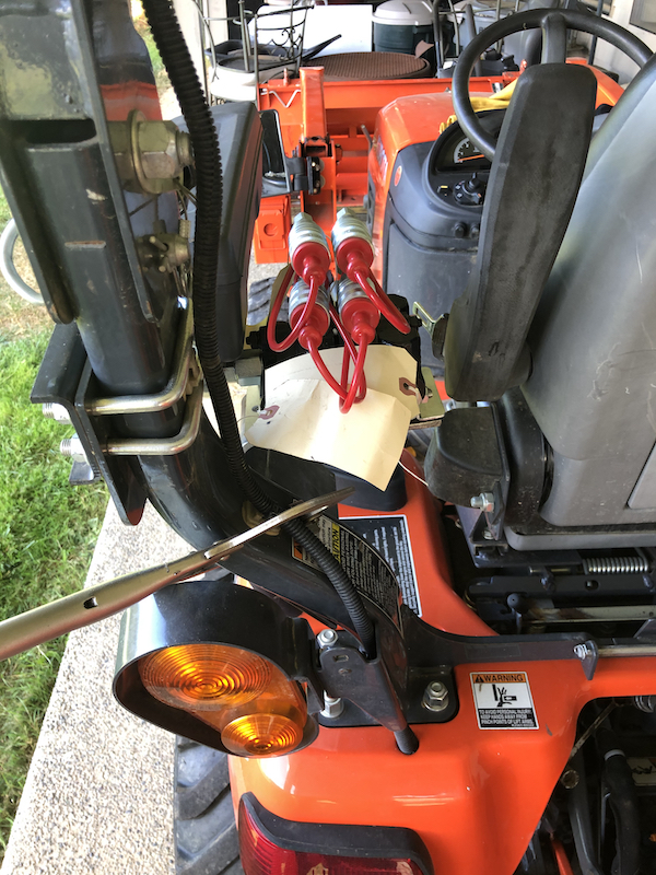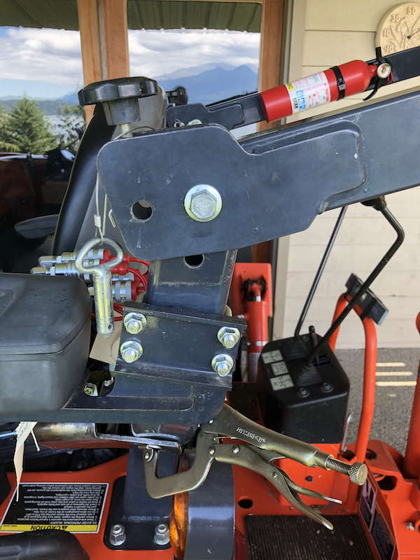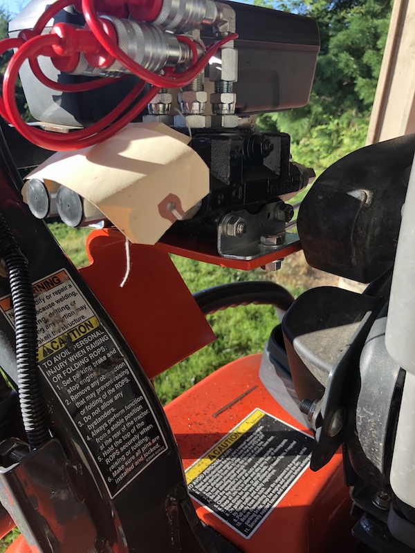 This means I will also have to bend the bracket a bit more to keep the remote mount level because of the shape of the ROPS where I am mounting the bracket. Further, I need to make sure I can still swivel the seat for backhoe ops. Did I say I was working in tight quarters? Stay tuned....