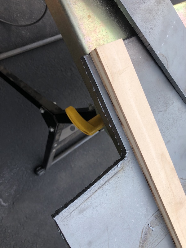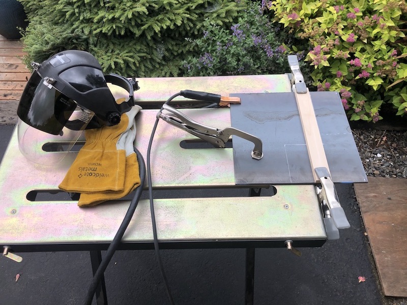 Decided to mount this to the ROPS. Once I got a decent idea of what the bracket looked like it was time to take a piece of 1/4in steel plate and plasma cut the outline. Basically an 'L' shaped piece that would require two bends and 4 drilled holes. Two holes to mount the remotes to the bracket and two holes to mount the bracket to the ROPS.