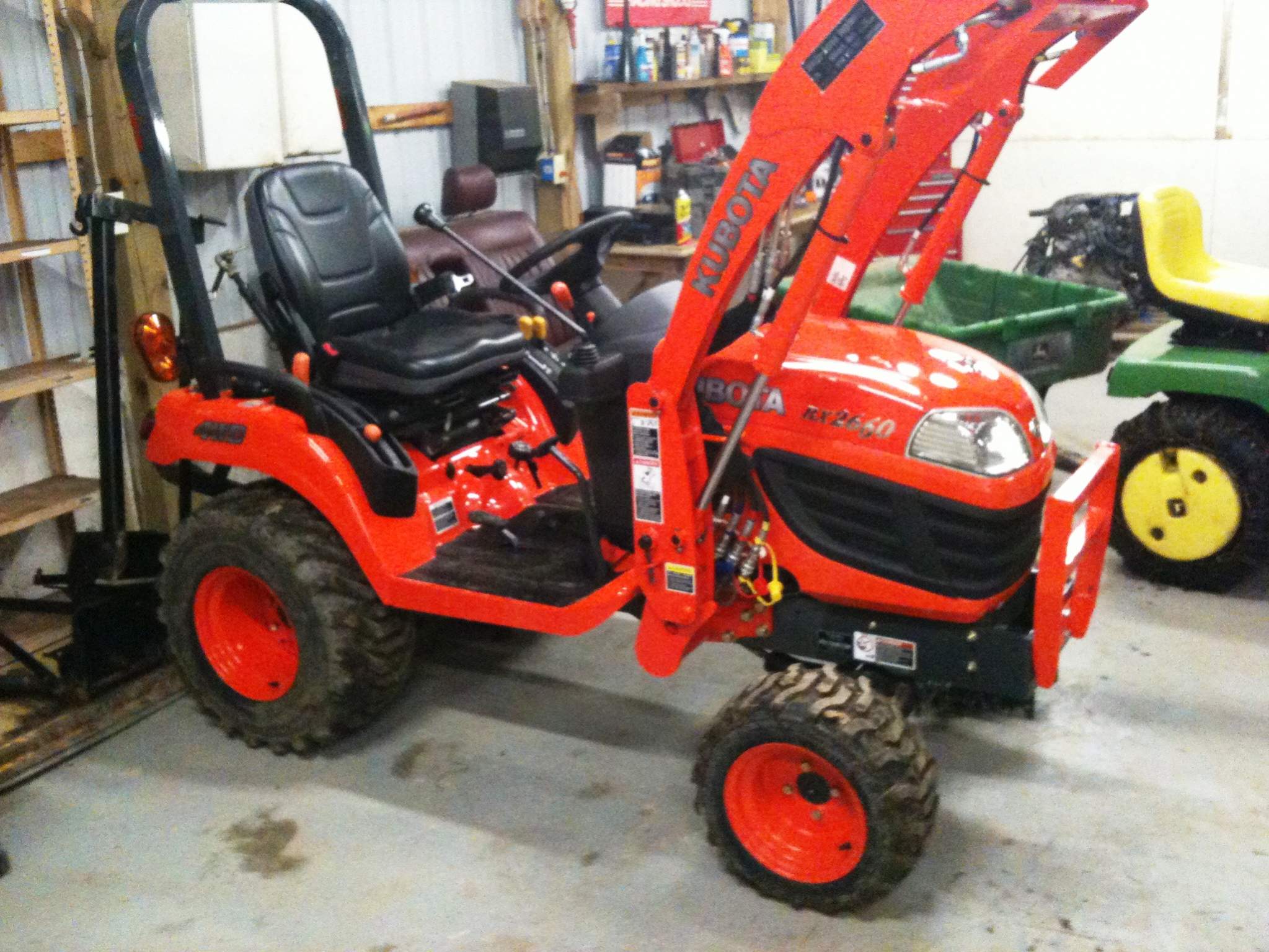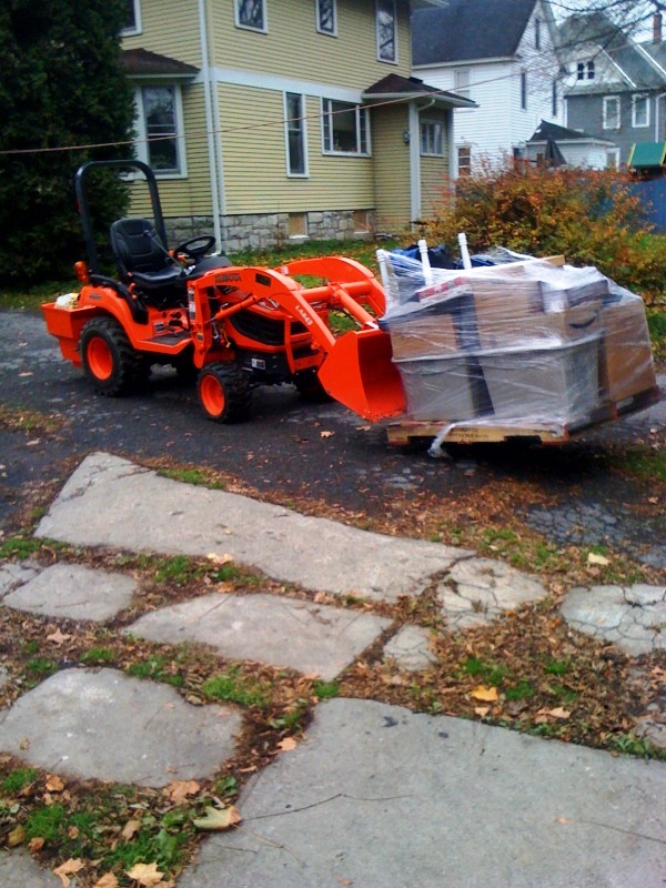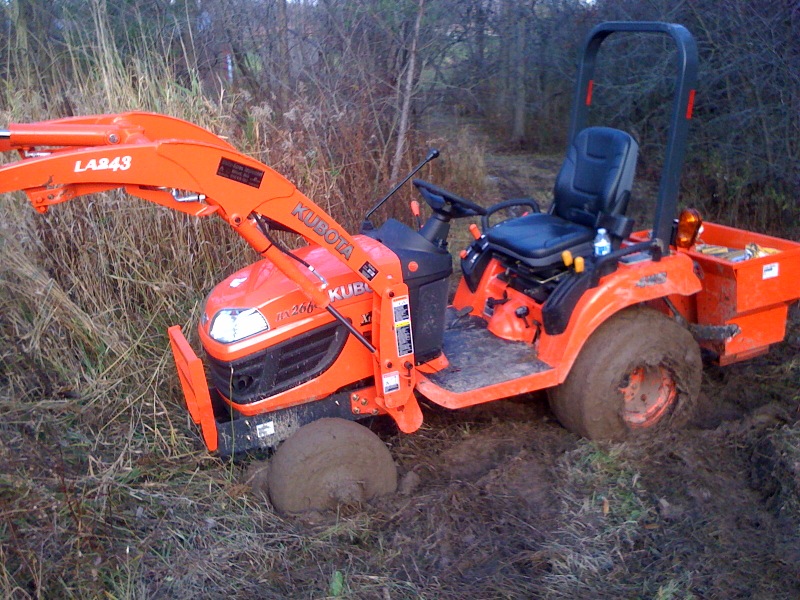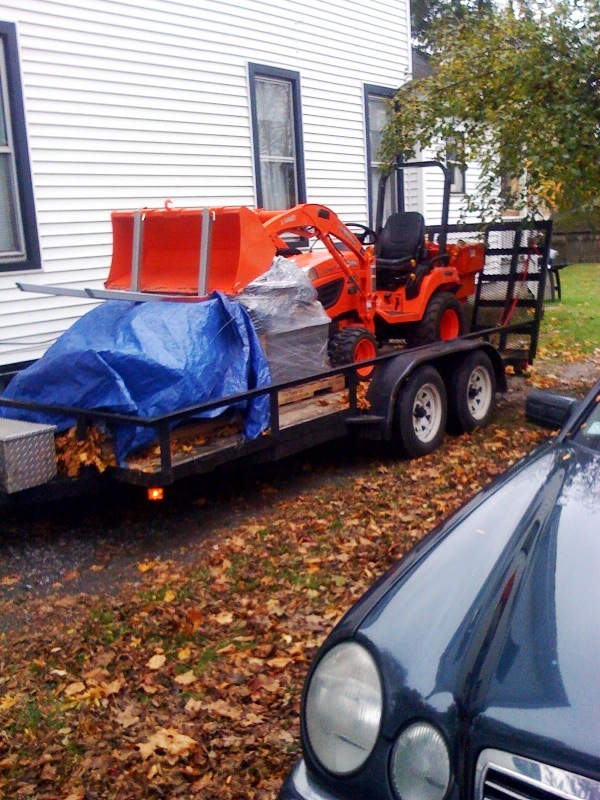 After putting about 18 hours on my new tractor, im really starting to see how much of a jack of all trades tool it is! We just moved into a new house and has made the move easy. Clearing and cleaning up the new property (8 acres) was an absolute pleasure to do with this tractor. Now I only wish there was more. enjoy the pics. By the way, what is the best rotary cutter to get for this, size wise? I borrowed a friends 60" woods, and it was a little big and clunky to carry around. Needed the FEL for front ballast otherwise the front wheels wouldnt turn. The tractor handled it like a champ cutting our back lot down, not so much as a hiccup. 42" or 48"? How about a 54". I would like to go woods or landpride. Any suggestions?