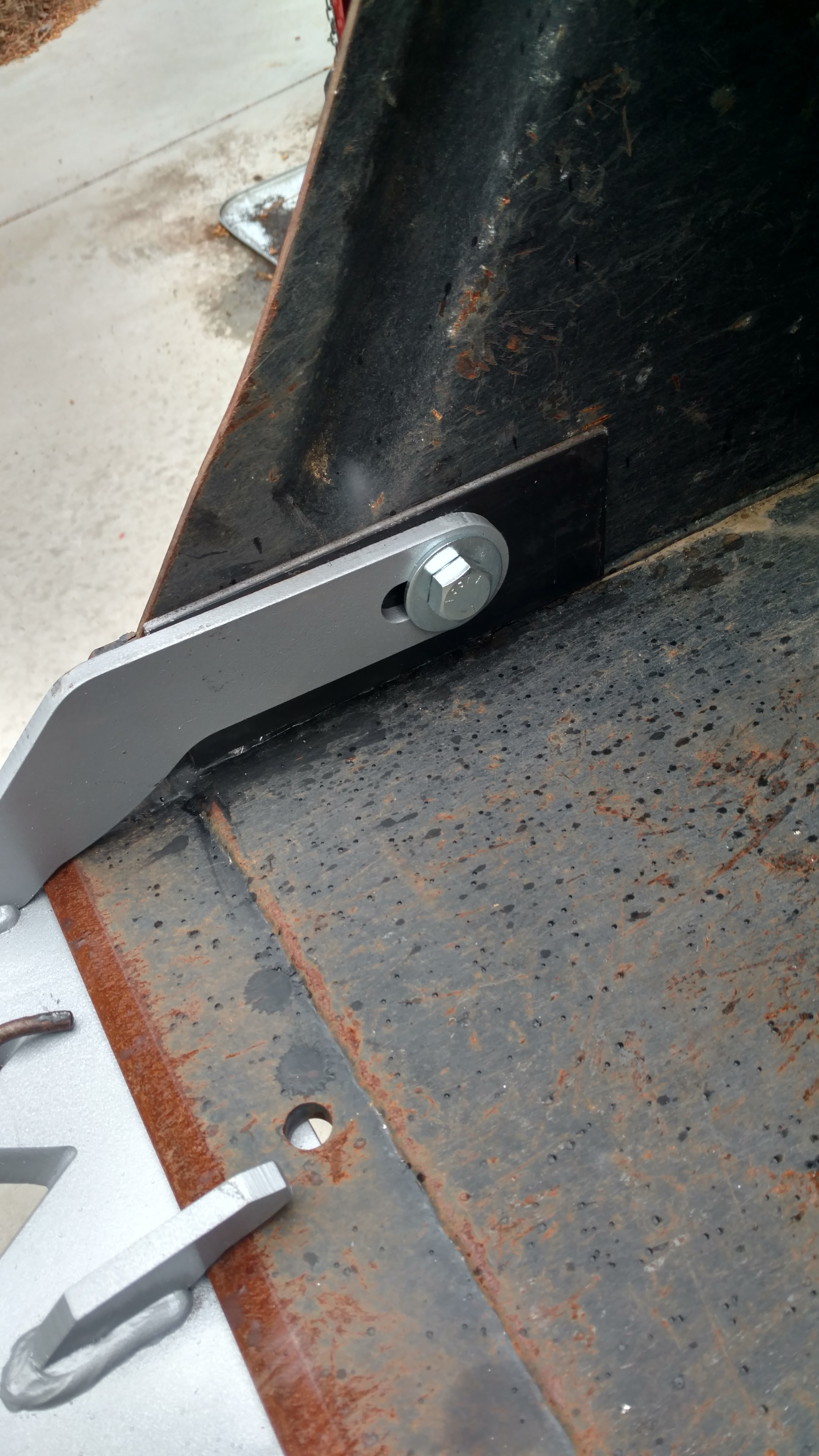 Added a couple pieces of 1/4" plate, secured by the new longer mounting bolts. Now it all lines up properly, and looks right to me. Mounting arms are well supported, with just a little extra work. I just couldn't live with it as supplied.View attachment 604309