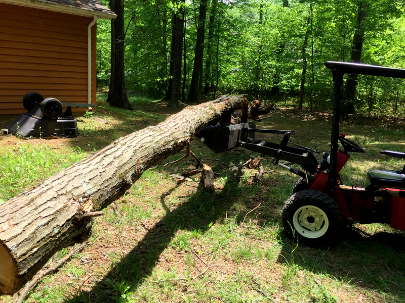 For the heck of it , I lifted half of this old tree to give the ol girl a workout.. I know this tree was easily 900 pounds if not more. Love my little tractor on steroids.. :thumbsup: