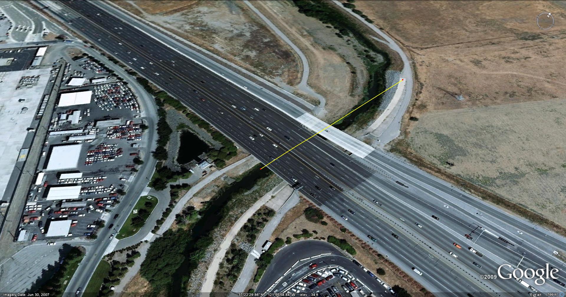 The overhead picture shows where I took the pictures from, I was at the right hand end of the yellow line and the other person was at the left end of the line.