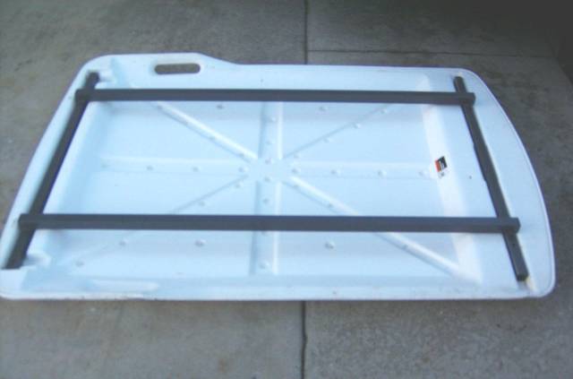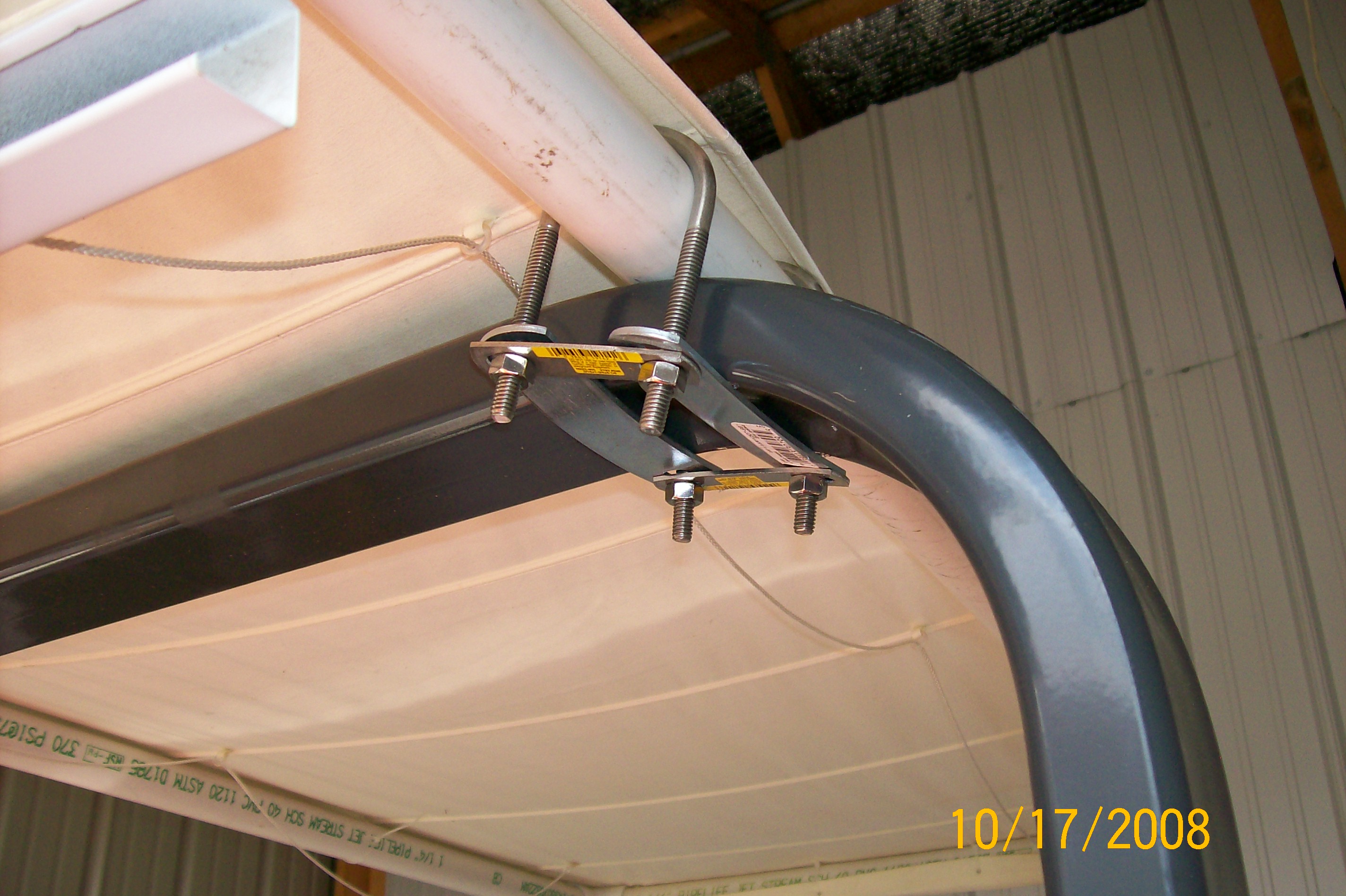 OK here are the photos that I promised. I have a total of about $85.00 in this one. That includes the cost for the tubing, tubing caps, bolts, paint, some angle for brackets and of course the poly top. I know I know it is not that cheap---but have you priced the ones from the dealer or after market shade suppliers?