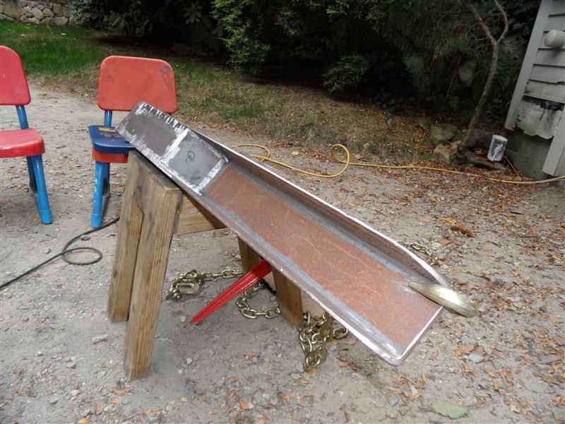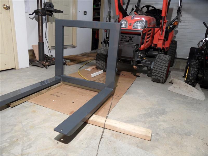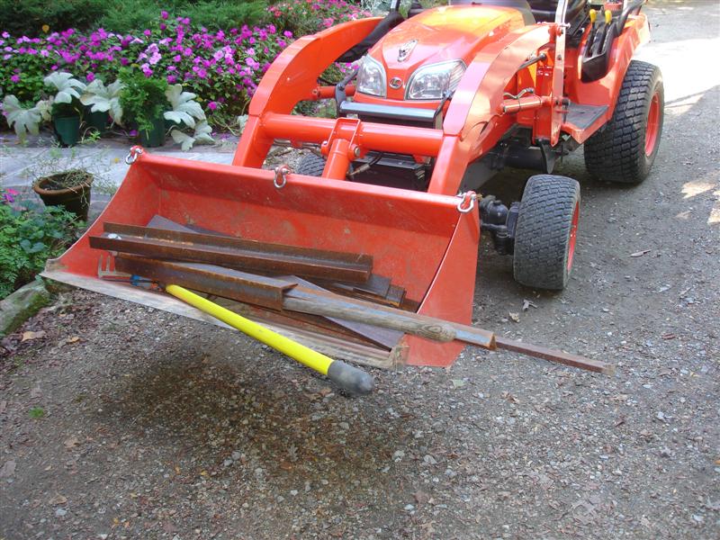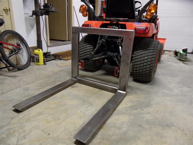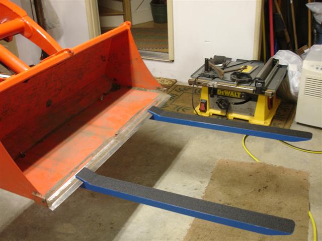 The fork channel is 4" x 1 3/4" x 1/4 x 34" long. Bottom has smaller channel nested in it from the elbow to 1/2 the length. as long as I don't load the tips, the tractor would probably tip over before the forks fail. On the list is a precast slab of concrete ballast (I have 7 bags of sakrete I've got to use up before it craps out on me). Also will cover the tops of the forks with 3M skid tape - the stuff is pretty tough - like I used on my front forks.