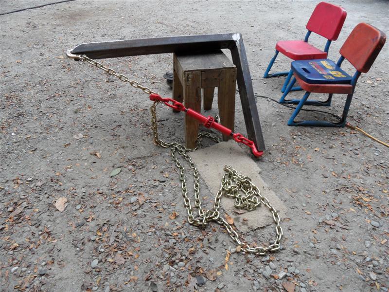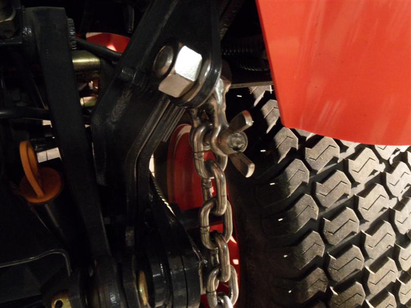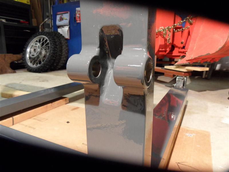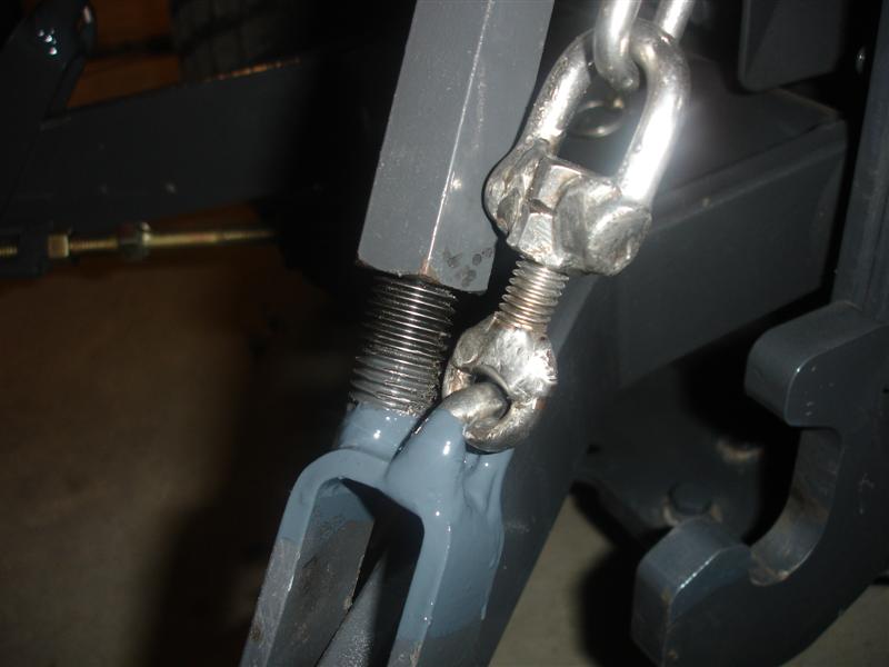 GW; Way overbuilt for sure (my back tells me it's over 100lbs). Despite trying to offset weld shinkage when I nested C channel into the bottom of the forks I had one bend a bit - off 3/16 at the tips. Had to heat it red hot with the torch and beat it like a red headed step child with my biggest sledge to take the bend out. Am sure the lower linkage would fail before the forks. Built with scraps on hand so was not 100% by design. Also set up some adjustable chain with an equalizer link made from a shackle, bolt & two nuts on one side to level out the lower arms - all SS :thumbsup: