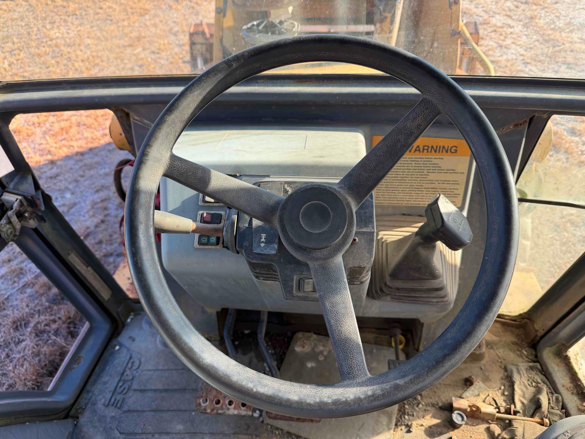 Located at Blairsville, GA Lot - Case 580L Backhoe - 4x4 - Enclosed cab - Missing some glass - Serial: JJG0243018 - Hours: 5452 - Runs and will operate but has multiple hydraulic leaks