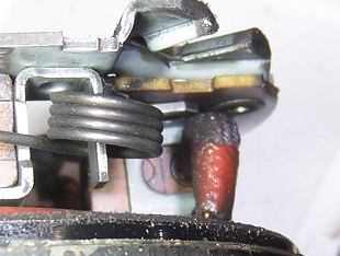 I presume that messed-up brush made charging the battery real ugly! I wonder if that is what cooked the old battery?