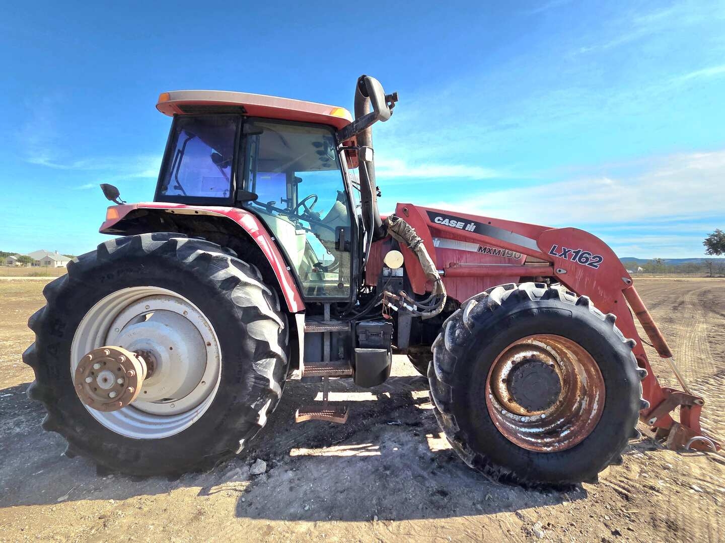 (Comfort. TX) CASE MXM 190 TRACTOR ENGINE: CHN GENISIS 7.4 LITER/190HP, METER READS: 4,333HRS, ENGINE STARTS: YES, TRANSMISSION: 19 SPEED FORWARD/ 6 SPEED REVERSE FULL POWERSHIFT, 4X4, ENCLOSED CAB, AC/HEAT, PTO, 3 POINT HITCH. AUX HYD HOOK UP CONTECTIONS, LX 162 FRONT LOADER ATTACHMENT, 84IN BUCKET, CABBED, AC/HEAT, TIRES: 420/90R30 FRONT, 20.8R42 REAR. (ADDITIONAL REAR SET OF DUAL WHEELS, FRONT HYD LINE LEAKING FOR BUCKET PLATE). ITEM# 20251