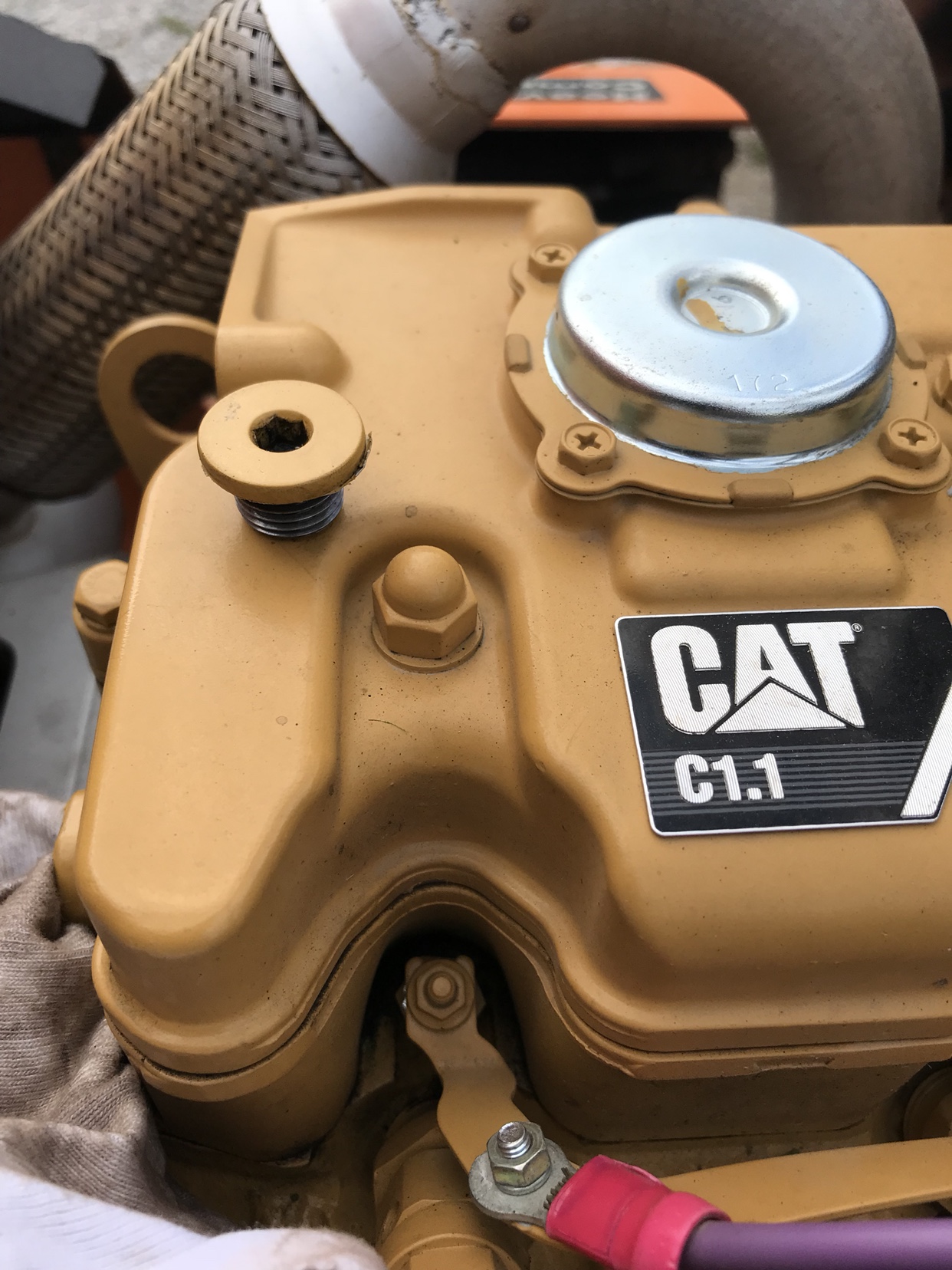 I recently purchased a Scag turf tiger with a cat 1.1 diesel (28 hp) and noticed an oil leak at what seems to be a bolt or plug, I'm afraid to remove it thinking it might be holding the cam shaft.
