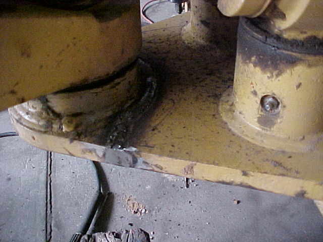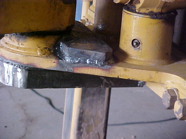 MVC-840F.JPG1"x4" plate added above the original plate, cut away to allow welding around slew bush. Two 2"x1" flats on edge added below the original plate.