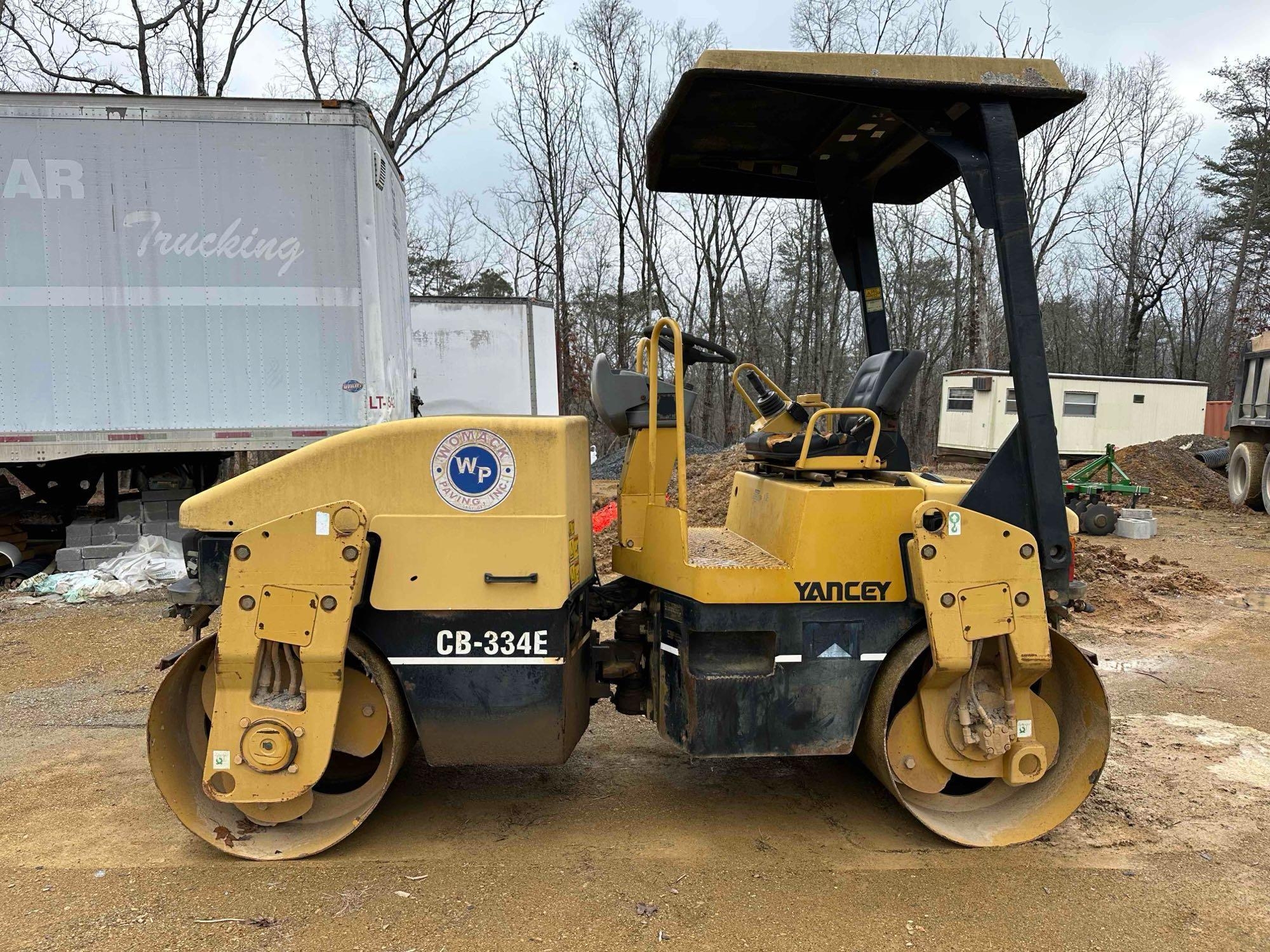 Located offsite in Dalton, GA - CAT CB-334E Smooth Drum Roller - PIN # CATCB334KC3A00240 - hours showing 8759 - runs/moves - water system operates