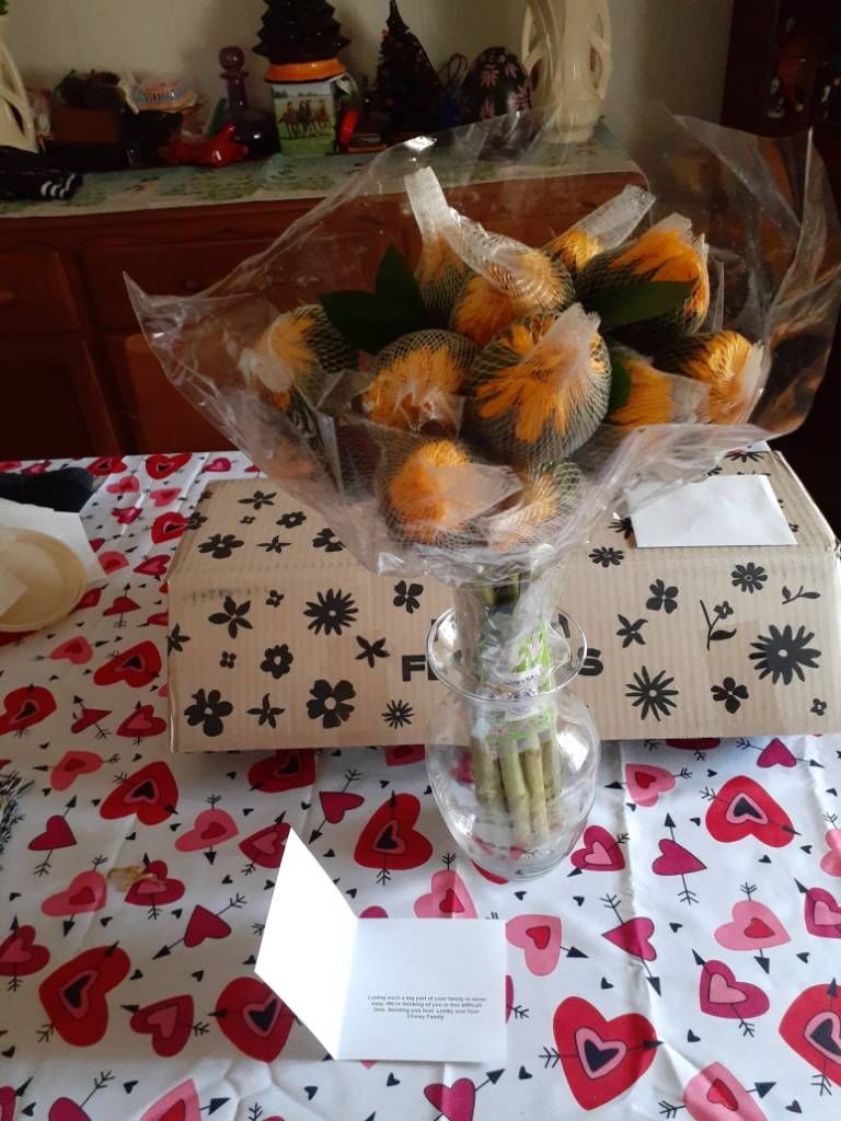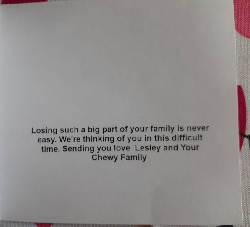 Today there was this box(???). Inside was this sympathy card and flowers in a vase wife put in kitchen window.