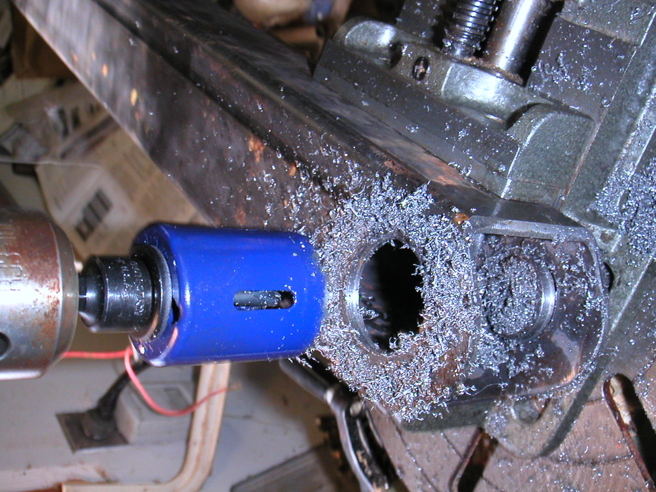 On boring out the holes for the bushings/tubing, you probably have read about some of us using the bi-metal hole-saw bits. They work pretty good if you keep them cool with water air, or cutting fluid, with a slow speed on the drill press. They make carbide hole-saw bits also, and they cut really nice. When you make your pilot holes in the 4 x 4, drill through both sides without moving the 4 x 4. Then bore the large hole, turn it over and bore the other hole. Right before you start to tack things together, take the cylinder bushings, hydraulic cylinder and put everything together, and lay it up to check alignment, fore and aft, and side to side, the check fitness, If things look good, start tacking. things together.