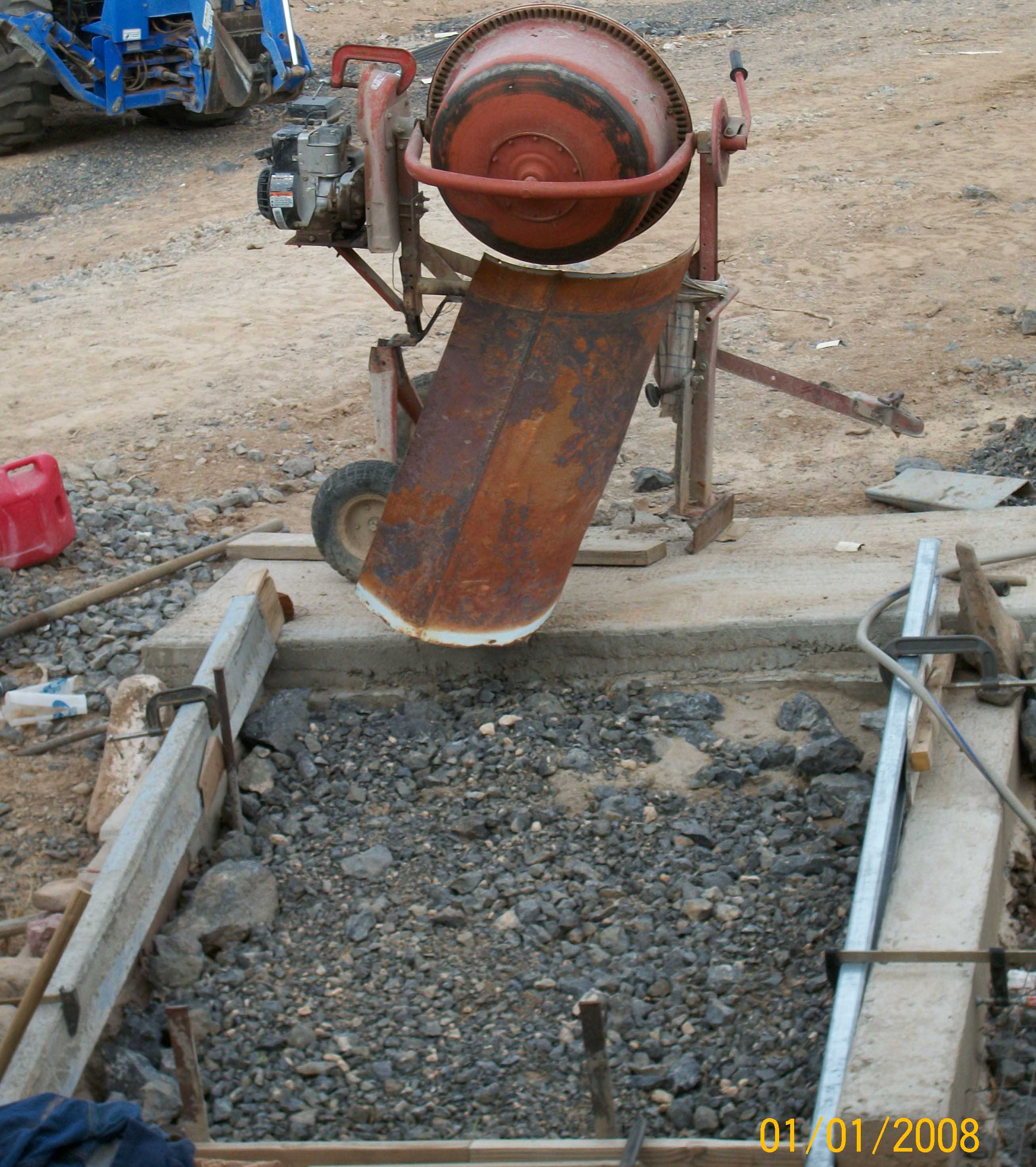 I have a 1/3 yd 3pt pto cement mixer that is very handy to use. Hydraulic dump. I buy a ready to use mix from HD or Lowes. Toss 4 bags into the drum and a big bucket of water. Mix for 5 minutes or so and you are ready to pour.