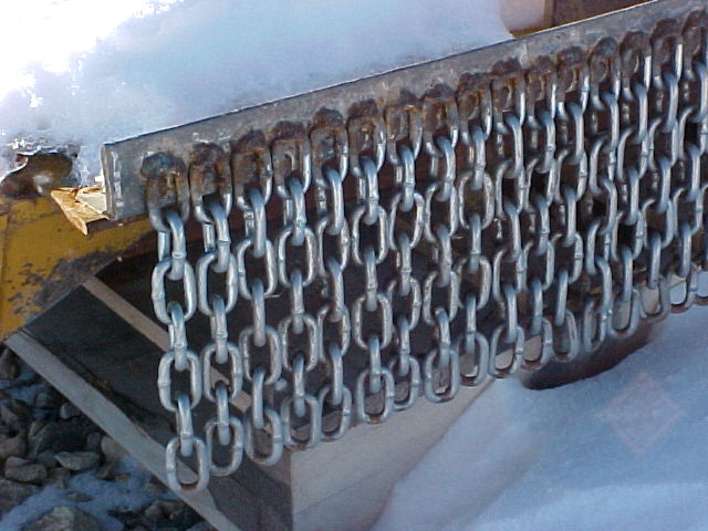 I'll try to post some tonight. Its buried in snow right now. I welded on the lengths of chain right next to each other. Wasn't really worried about them touching, didn't want anything to get through. You either have to move them out from the mower in the front or run chains that just touch the ground. I moved mine out away from the front of the mower a little because after first mounting them close to the mower, the mower shortened a couple of the center chains for me. /forums/images/graemlins/confused.gif Hadn't thought about the weeds dragging the chains into the cutter. Made a little racket but not for long.