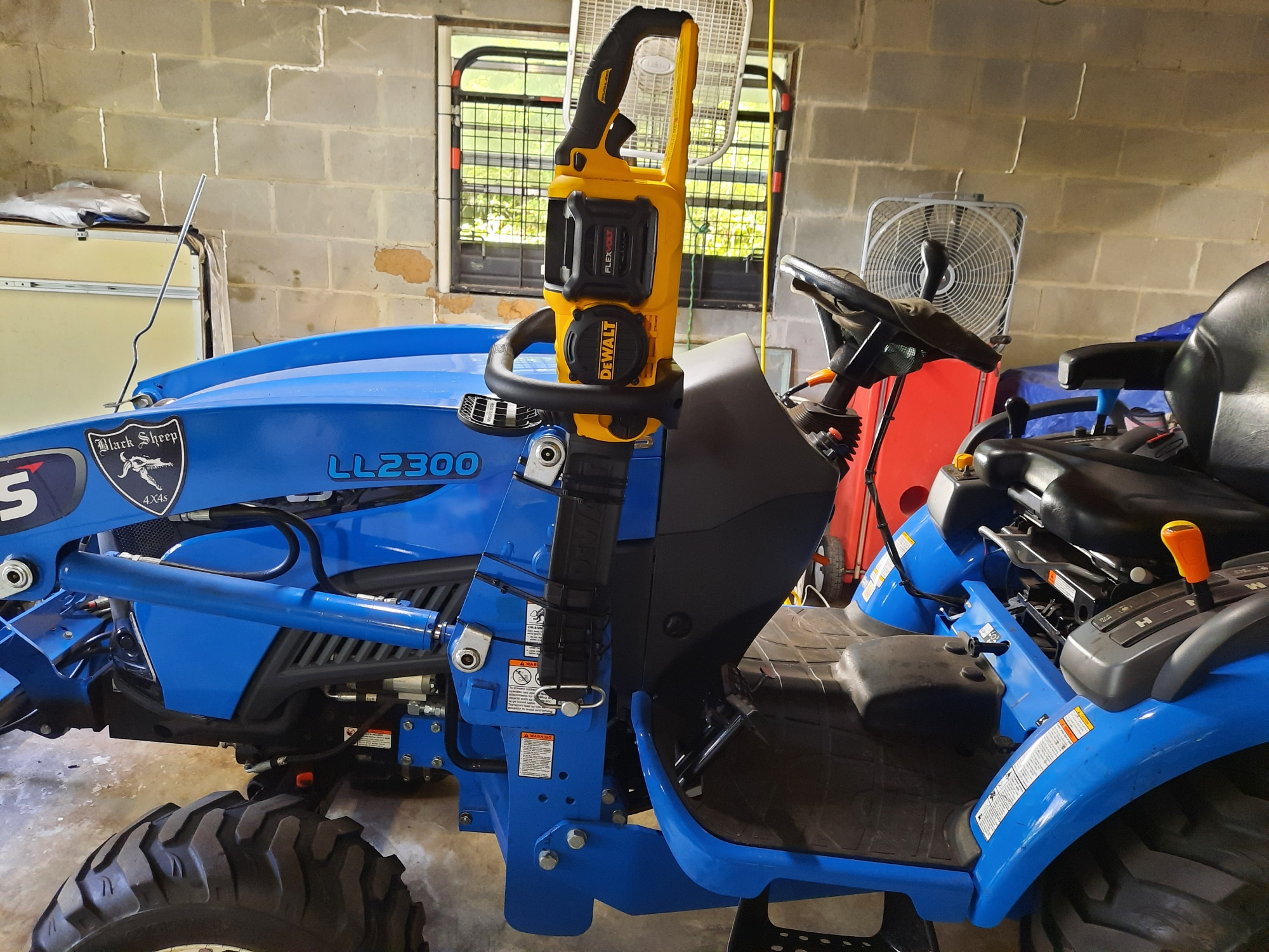 My land is not flat so it stayed in place for over 2 days now so I am happy with the mount and it did not cost me anything but a few bucks in cable ties. The saw is about 10 lbs with out the battery.