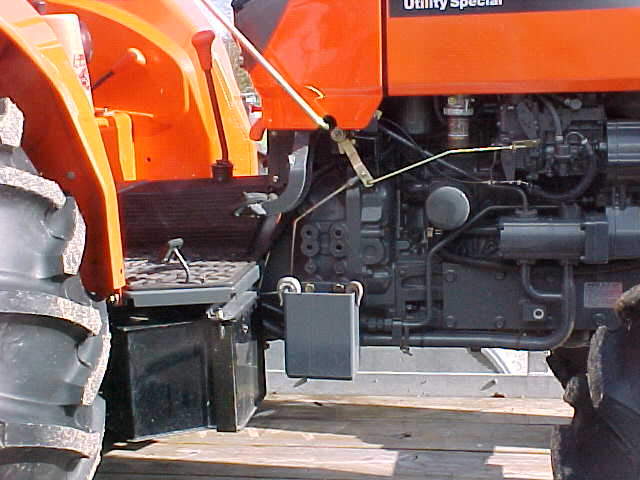 The other two boxes are made from bigger square tubing. They were $1 each. Two bigger boxes were originally mounted to the clutch bell housing in holes drilled for the FEL mounting. To get one of the chains I always had to walk around the tractor. When The FEL came the two boxes came off of course. Once the FEL was on I immediatly missed the chain box so picked up one of the boxes and started looking for a mounting location. It was so good that I got the third skinny box out of the scrap pile and mounted it too. The bolt holes on all three are easy enough to get to. Keep it simple.