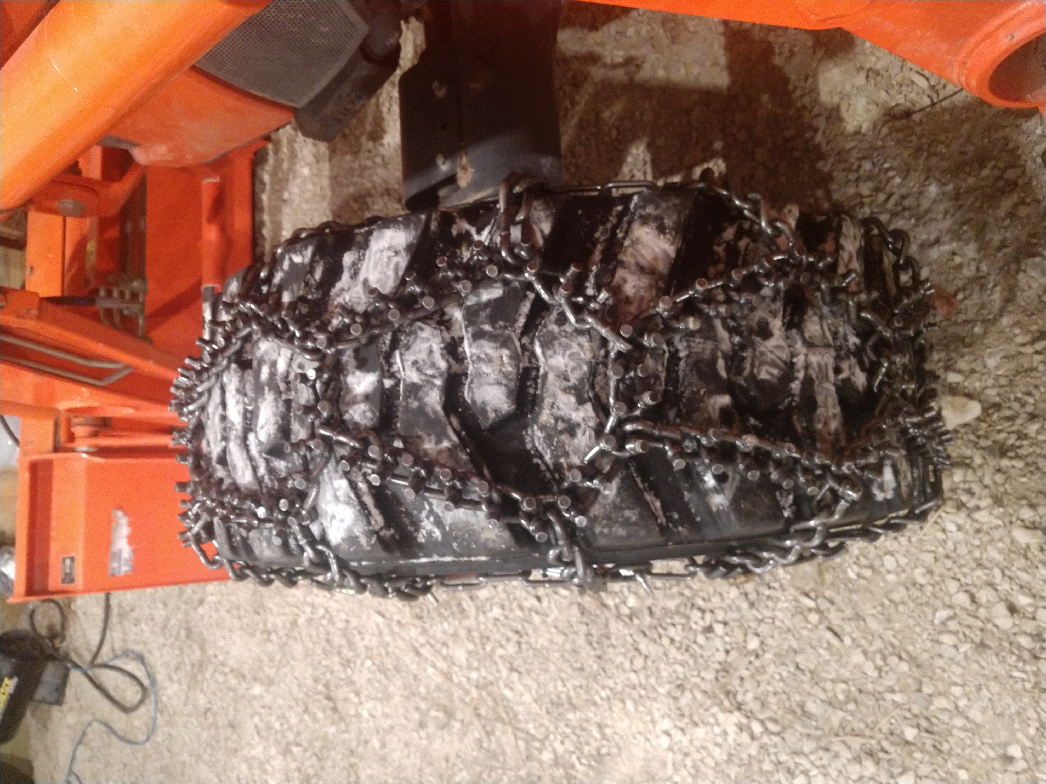 I have gone with front chains on my tractor... for many years. It has helped when going through snow and side hills. My lane has a bank on it, and if we ice or any ice develops, the back end slides.. I bought a set of studded chains for the rear last year. WOW.. is all I can say. It grips and keeps me going where I want to go. Not cheap.... but well worth it to me. I am on gravel only.