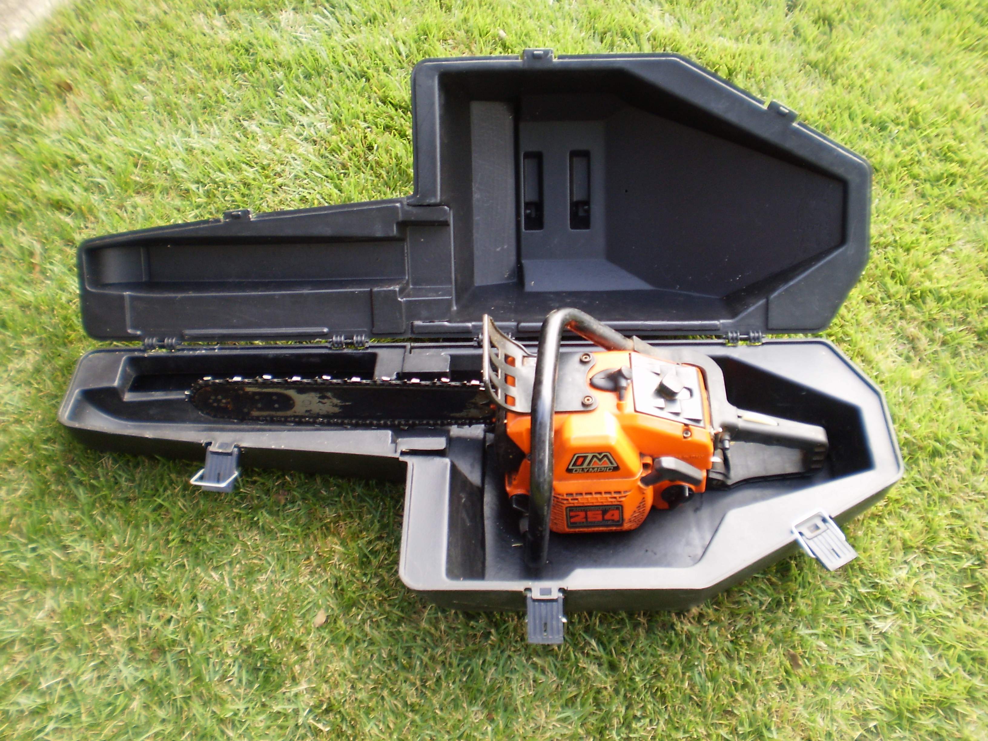 The saw came with a nice blow-molded case, a couple of hand tools, chainsaw file, a nice pencil-tip grease gun and 3 used chains. One of the chains was obviously never used after sharpening and the other two are in need of sharpening before use - if they were to be used again. Once I got the sharpener tuned up, I put one of the chains in to try the sharpener.