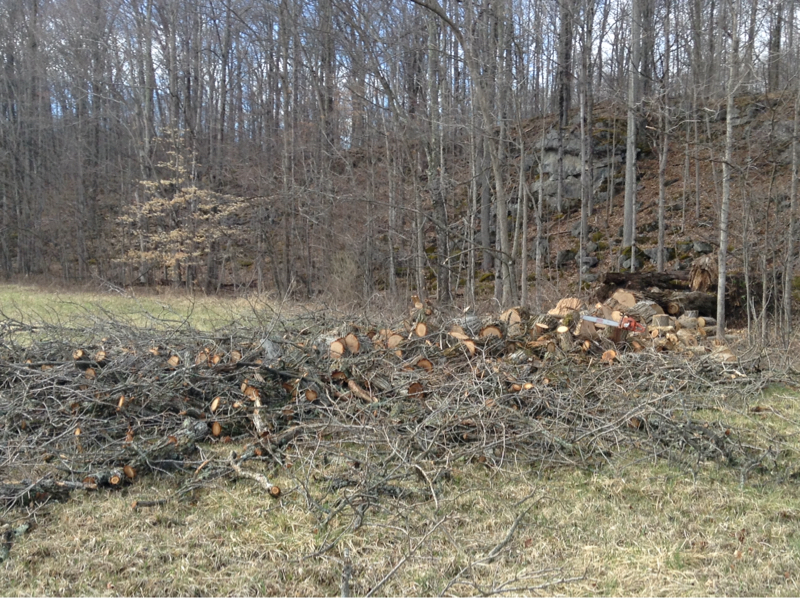 A pretty big tree (elm?) fell over in the field, and from the way it sets, I'm thinking I want a (temporary) bigger/biggest bar on the 57cc to make those ~1/2 dozen cuts on the trunk.