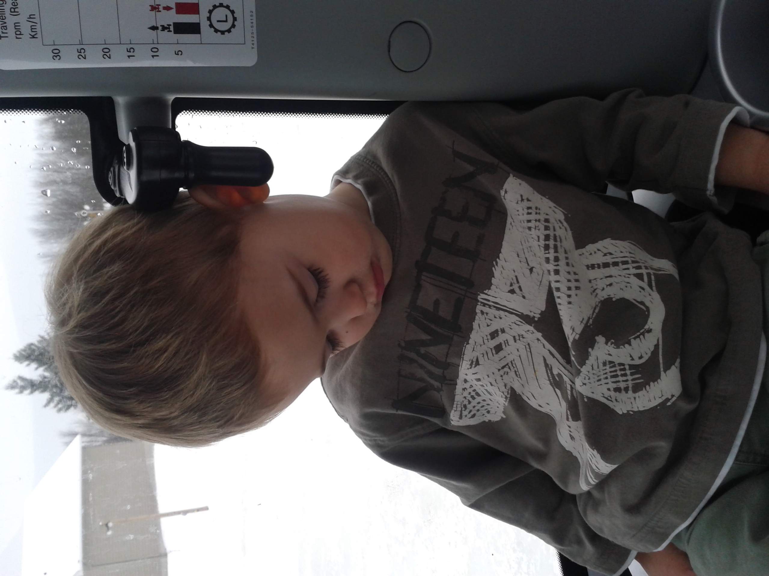 Thanks, apparently he gets more than a little upset in the house if he sees me on the tractor and he didn't get an invite, but almost without fail, he's asleep within ten minutes of getting in.