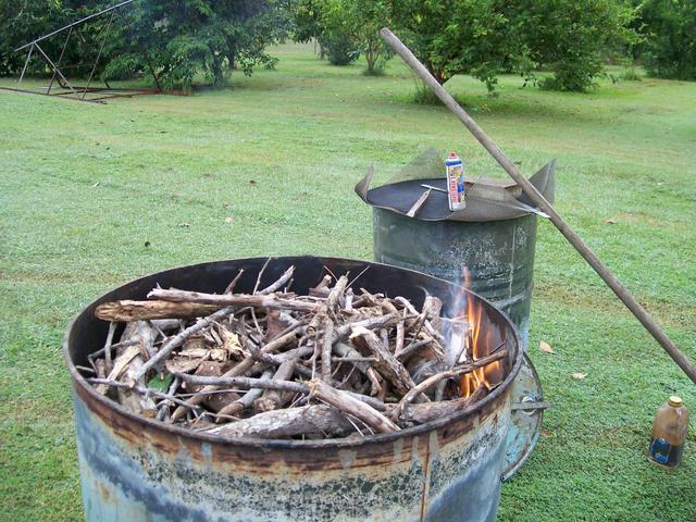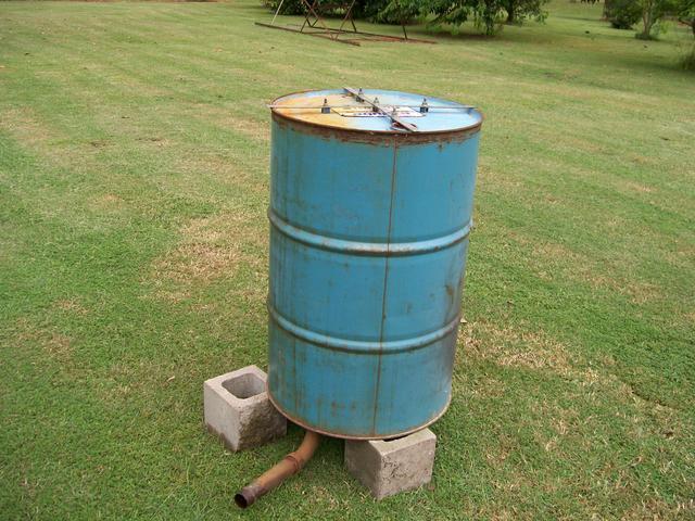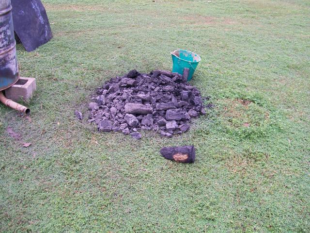 and a bucket of clay to seal the drum from air in the extinguished stage.