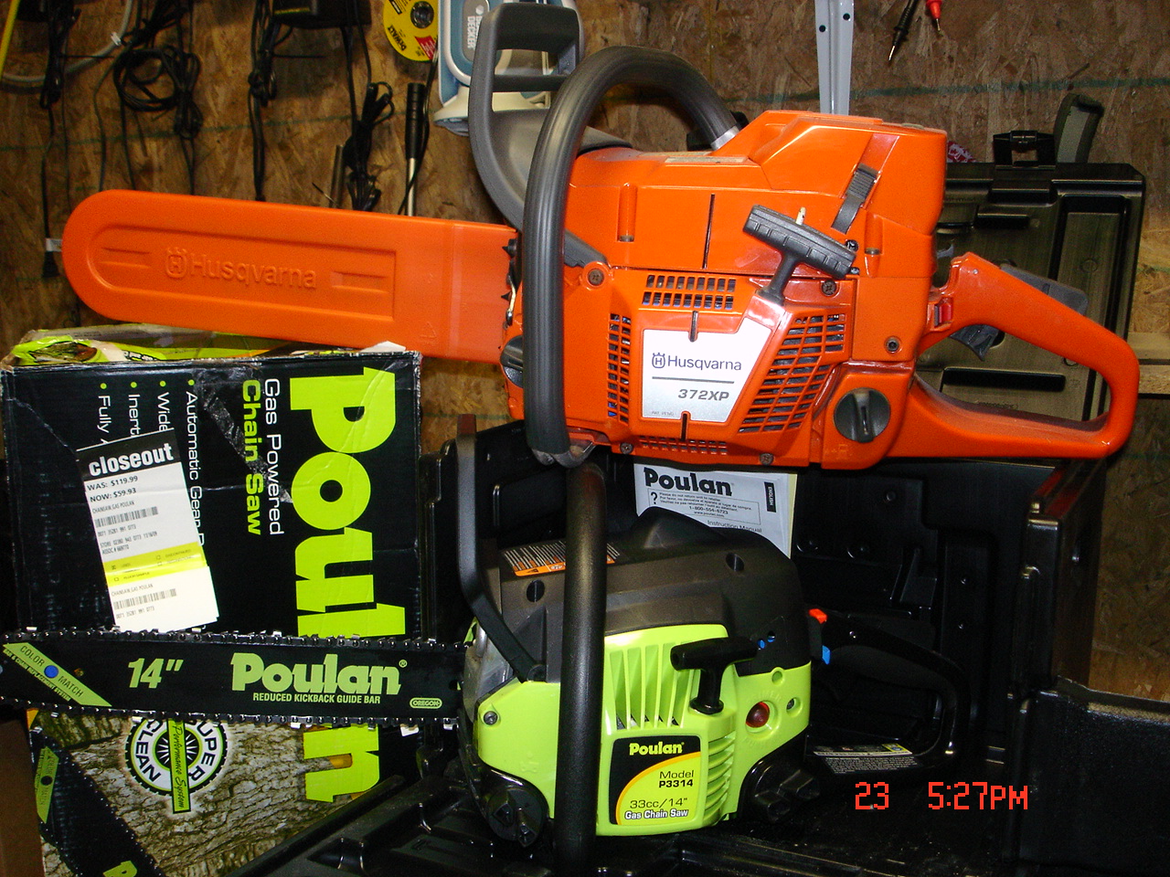We went back to Sears yesterday. My wife was looking for something, I can't remember what. I wandered back to the tool area and to my amazement the Poulin 14" chain saw was still there.