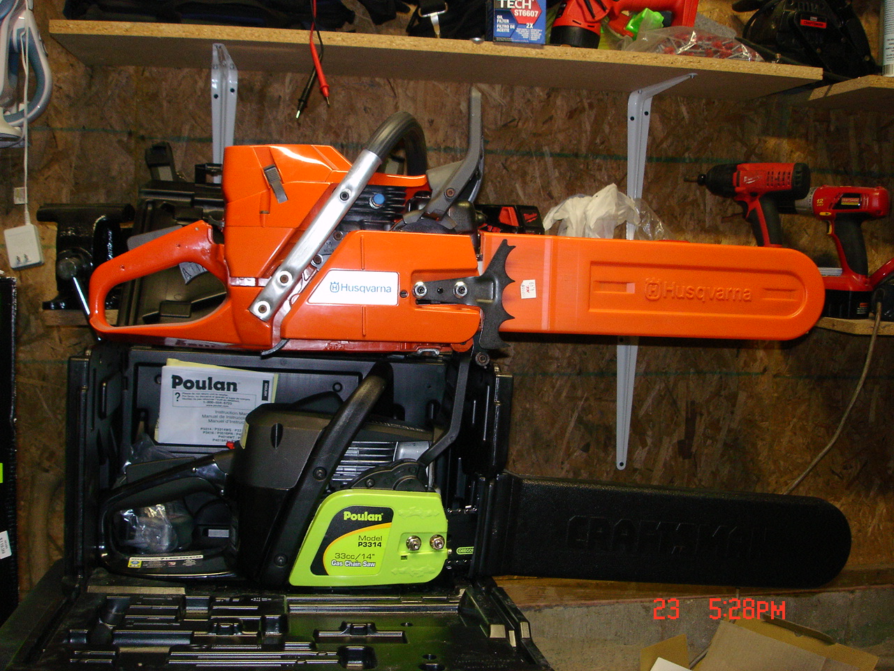 The poor orphaned Poulan followed me home and it fits in the Craftsman saw box like it was made for it. It actually was since Poulin makes many of the Craftsman saws.
