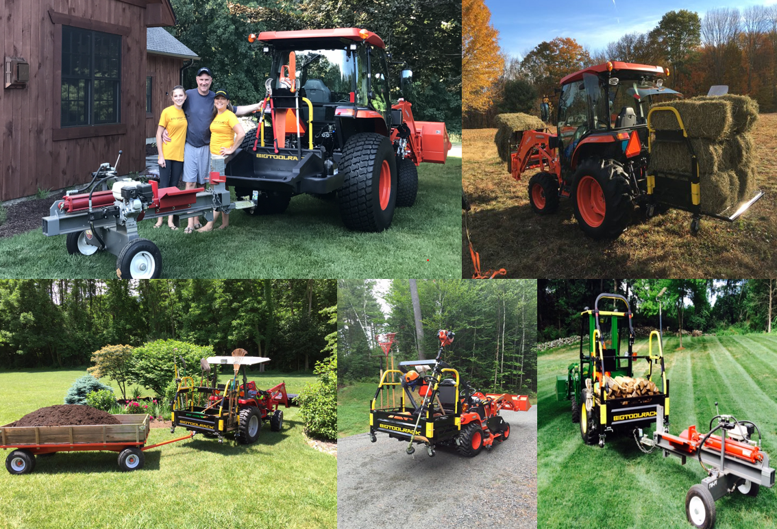 Standard Tow feature this gives you the ability to tow a small trailer around with the Bigtoolrack when connected to your tractor, like a log splitter or small utility trailer.