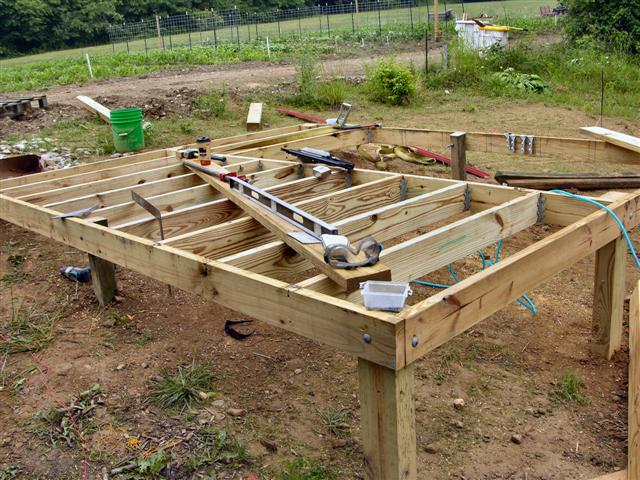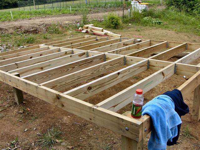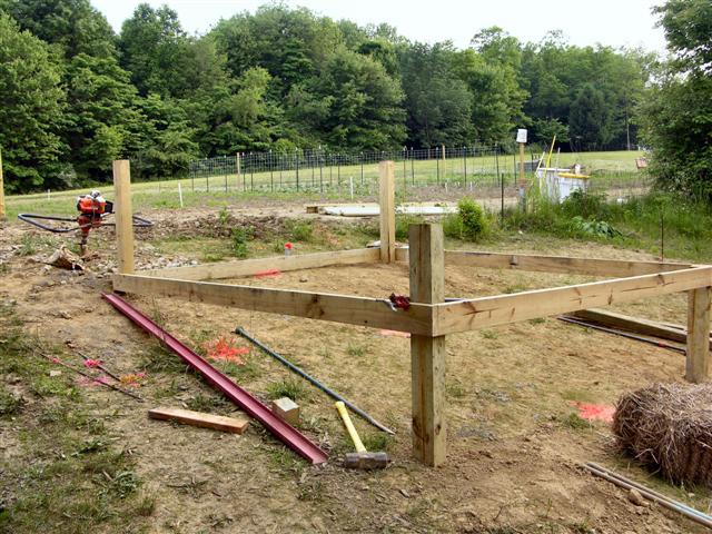 We decided to use 4 X 6 PT lumber for the support. Did I say that using a 2-man post hole auger in 90 degree heat ain't no fun? I hope this is no omen but the 1st hole we punched hit dead on the underground water supply to the garden irrigation system ssshhhhhh, boy that hole filled up quick. My helper asked me if I thought it was an artesian well? From that point forward I have a new helper now.