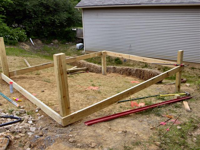 We picked out a spot of ground with a pretty good slope located between the pole barn and the 57' X 150' garden perimeter.