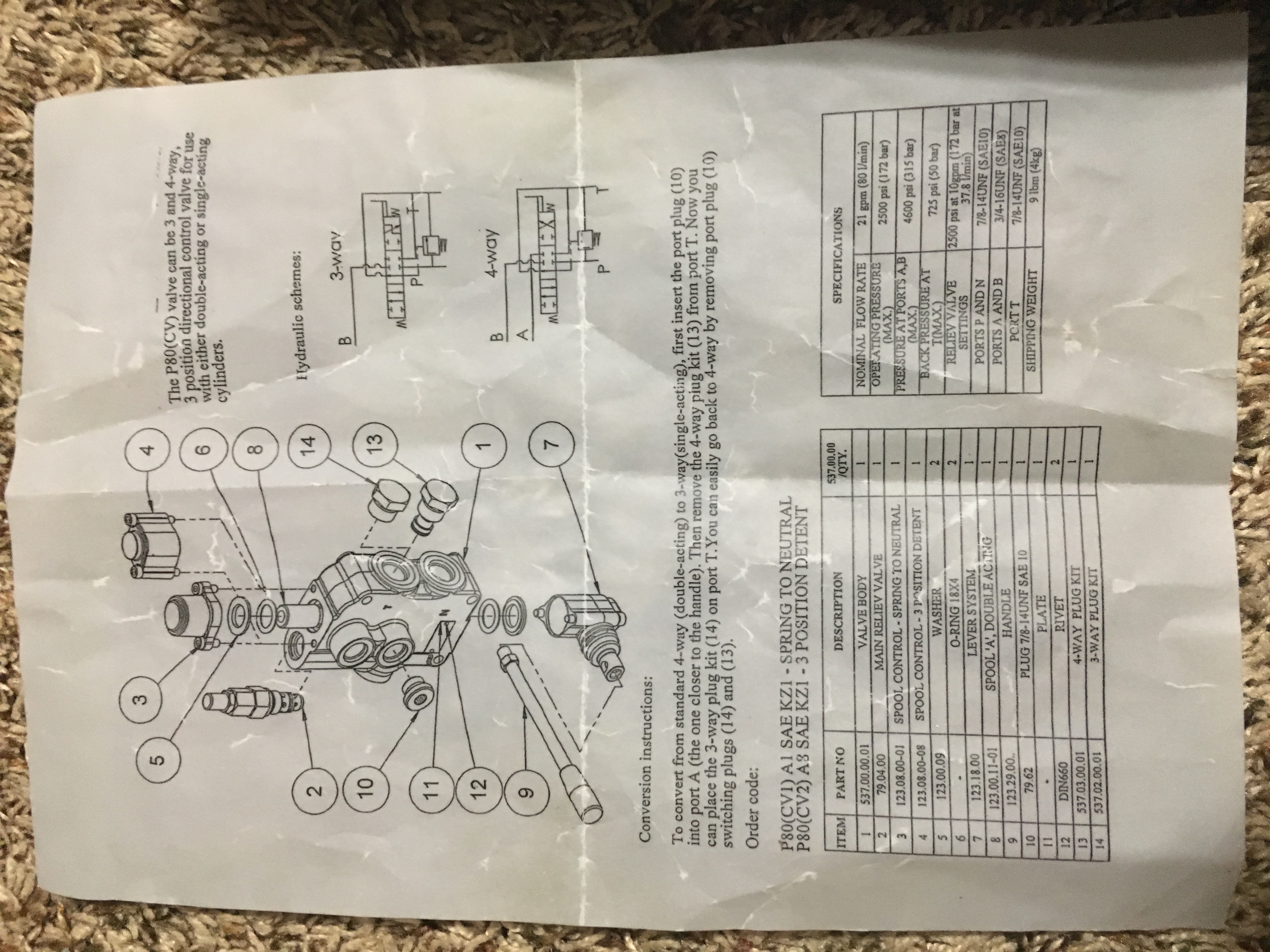 I am hoping someone can help with this seemingly over my head issue. I just purchased a chief p-80 series valve for a brush grapple I have just made.