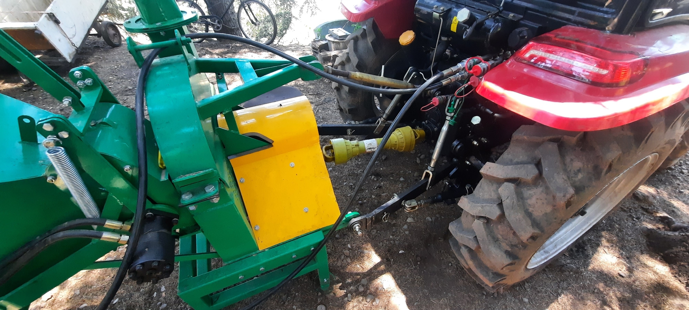 I suspect your feeder drum is powered by a reversible motor, so your spool valve has 3 positions. It should be marked with the IN and OUT (Tank) ports. You want to make sure your AUX supplies fluid to the IN, and the tank fitting returns via the other work port on you AUX valve.I don't know what that connector close to the pto shaft does.