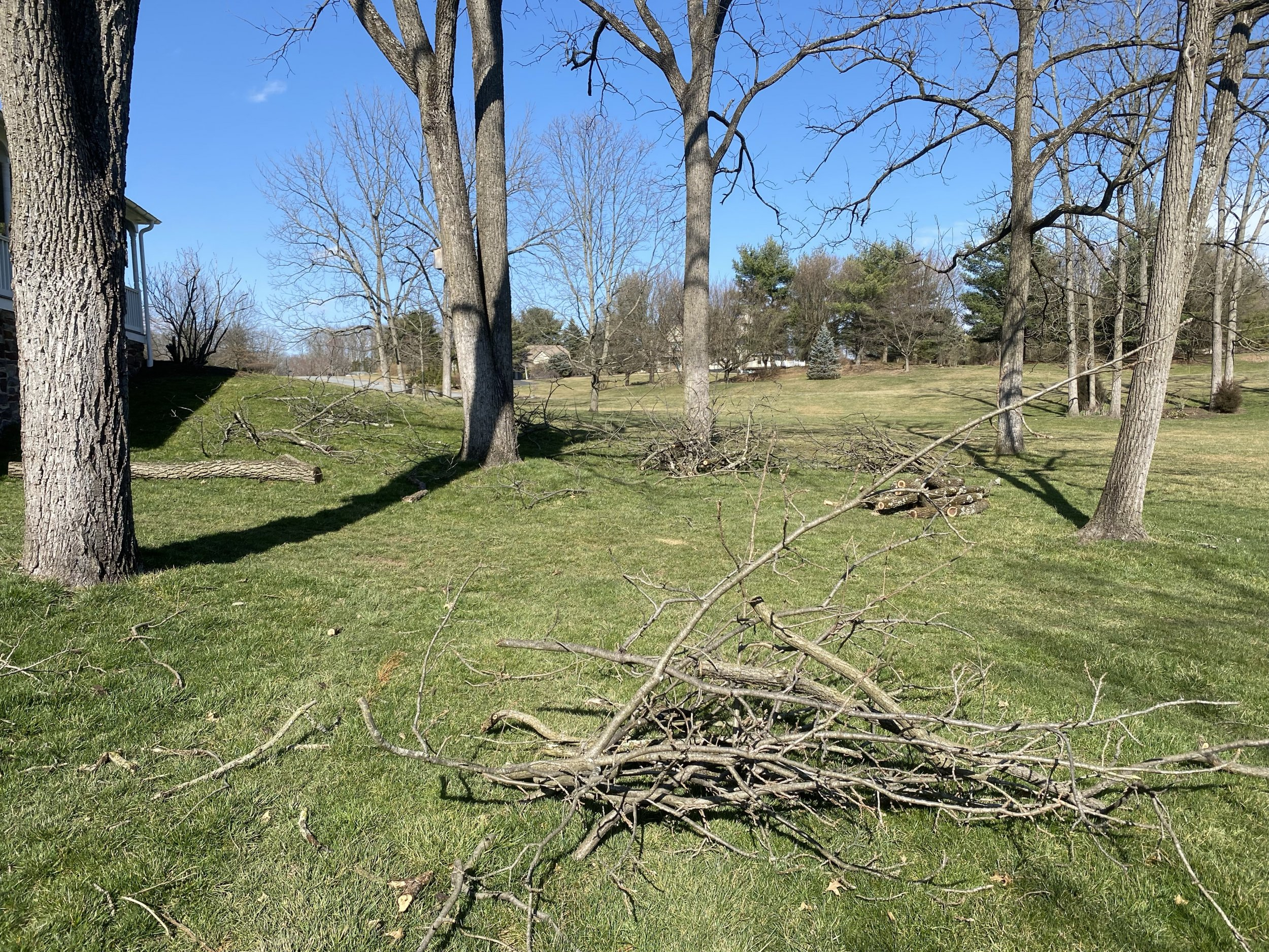 This probably pushes me more toward a chipper shredder, than a standard chipper. That said, I do see the advantage of hydraulic feed, especially if it will suck in a widely-forking branch. For example, this group of piles was one of my several chores yesterday: