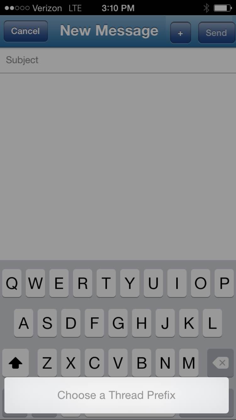 Trying to figure out what the issue is. My old iPhone 5s did the same thing. Basically, when I open the app and try to start a new thread everything is grayed out and at the bottom is says "choose a thread prefix". But everything is locked up and nothing works. Just have to close at App. Can anyone help me with this?