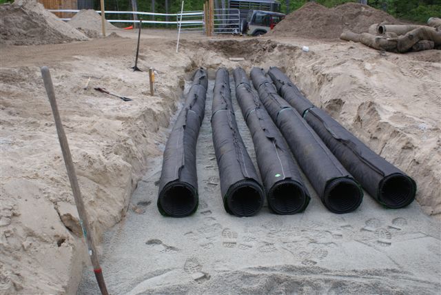 I got most of the pipes in place and started to cover them with the sand.