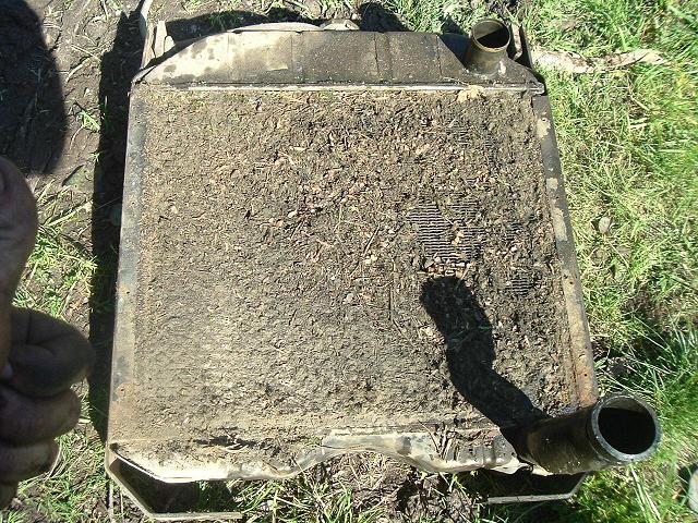 I understand bluechip and to drive that point home please take a peak at what can happen to plug up the outside of the fins in a radiator. This happens to be the radiator from my old International dozer but as you can imagine, the overheating problems were no mystery after I found this. Unfortunately the radiator on a dozer is not easy to get to and this one could not be cleaned in place.