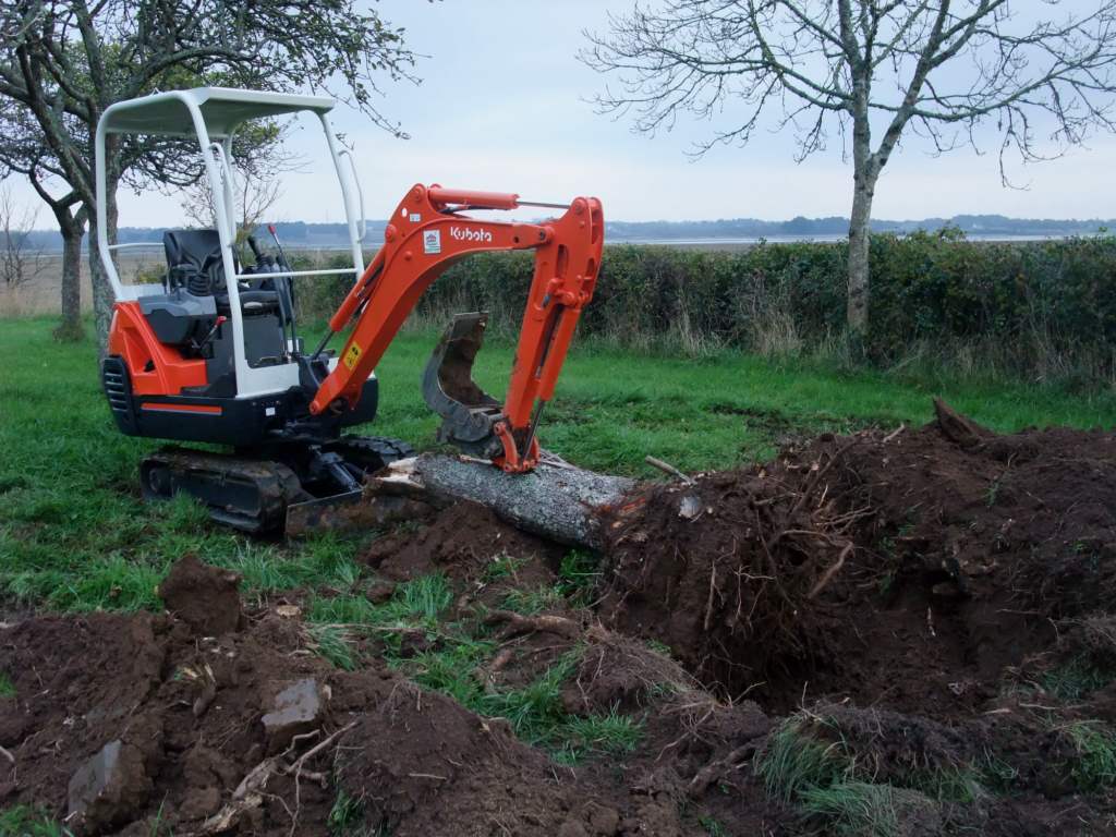 The largest tree pulled today. It is 4" just before the root. I pulled it out with the engine idling. I have pulled larger trees out but my tractor is on the small side so I am a bit limited.