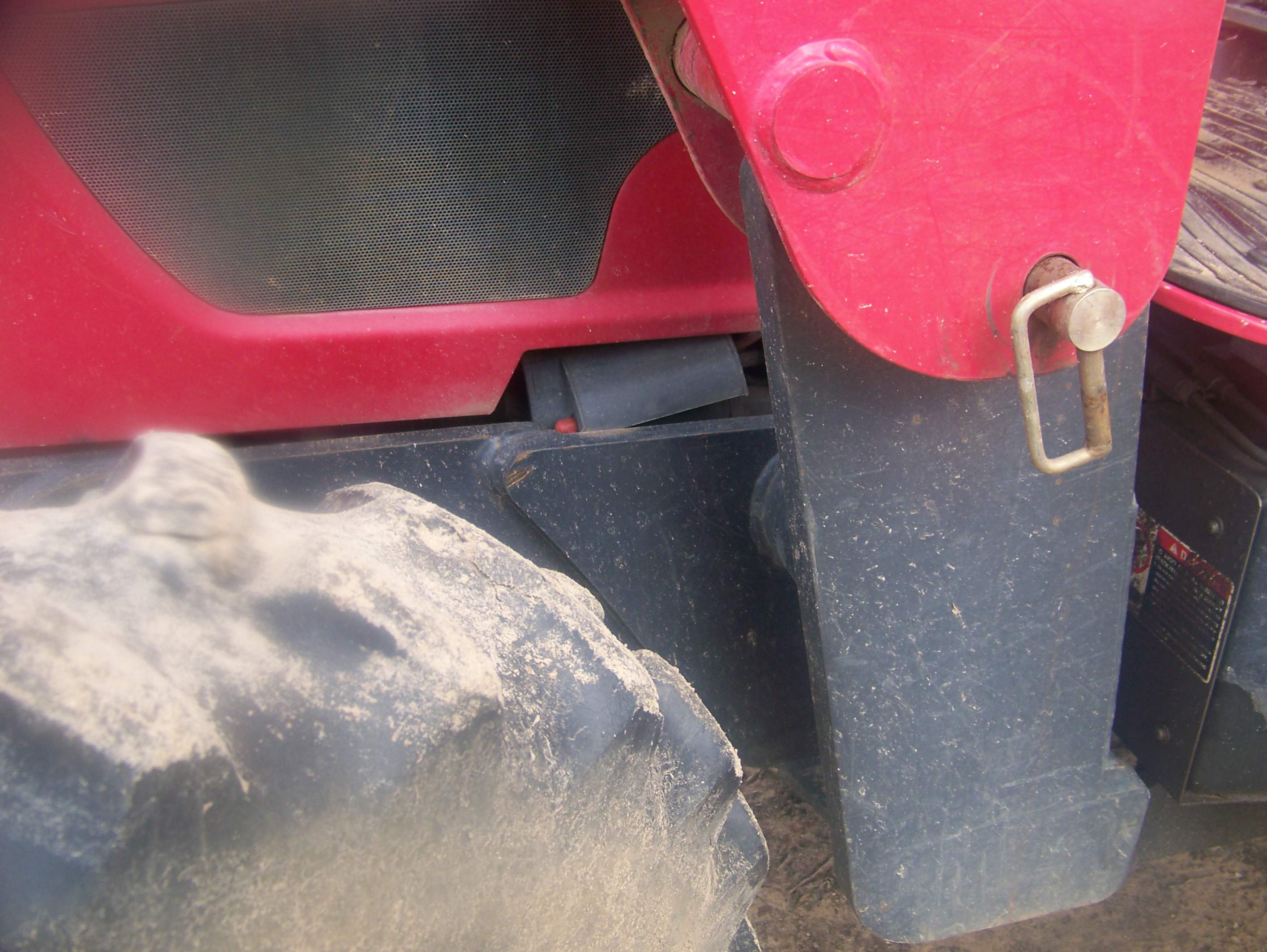 After working on the Cat the last two weekends, it was nice to fire up the Big RED Beast. I unloaded a 48 inch cleanout bucket for the Cat with her. She's a sweetie. I don't mine working around and on her with her idling. Not so much with the Cat idling. No safety lock. Controls are "hot" all the time at idle.