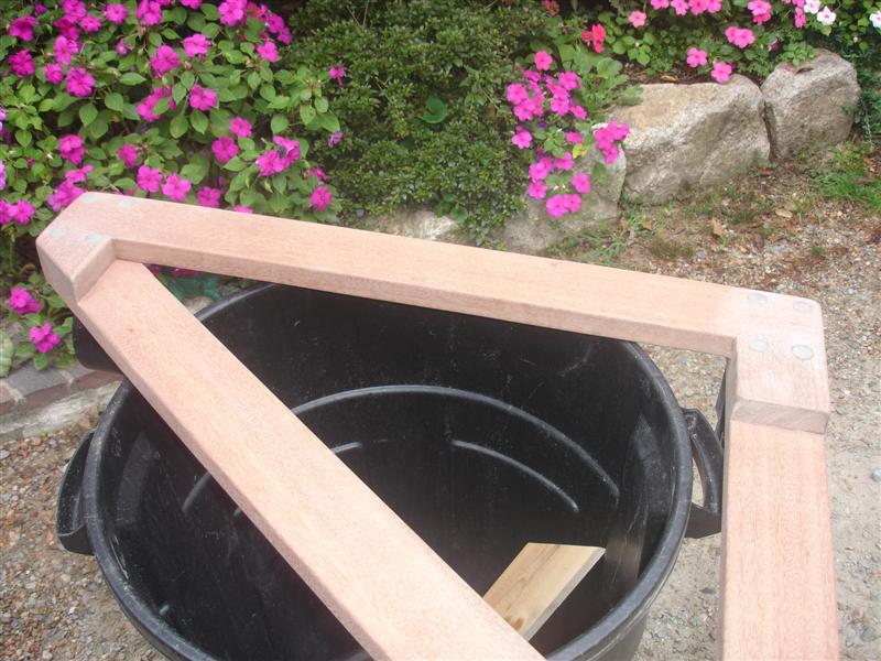 Scrap ripped mahogany from a trim job: 1 1/8" x 3 1/2" and four dolly wheels from Home Depot, some epoxy and a few bolts.