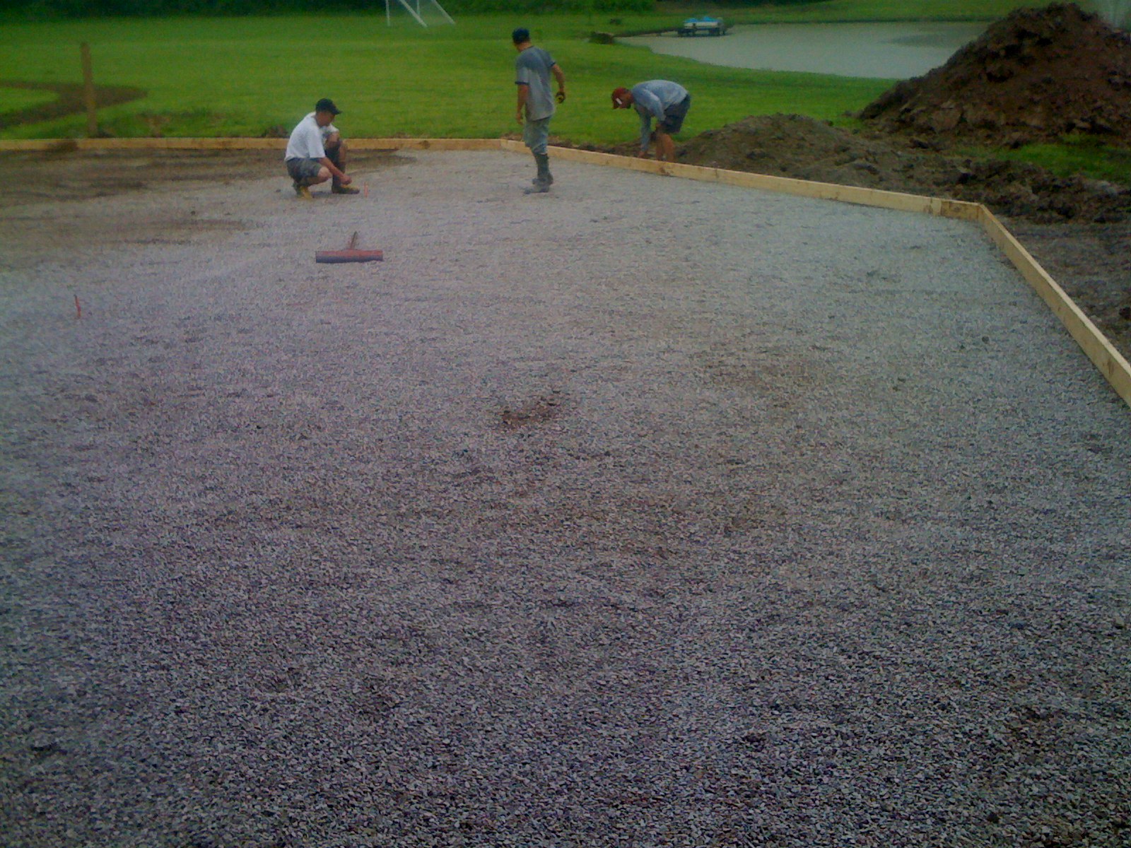 Dargo- Did you use anything under the concrete for a base like limestone. If not I agree that the concrete needs to be thicker than normal if pouring over dirt.