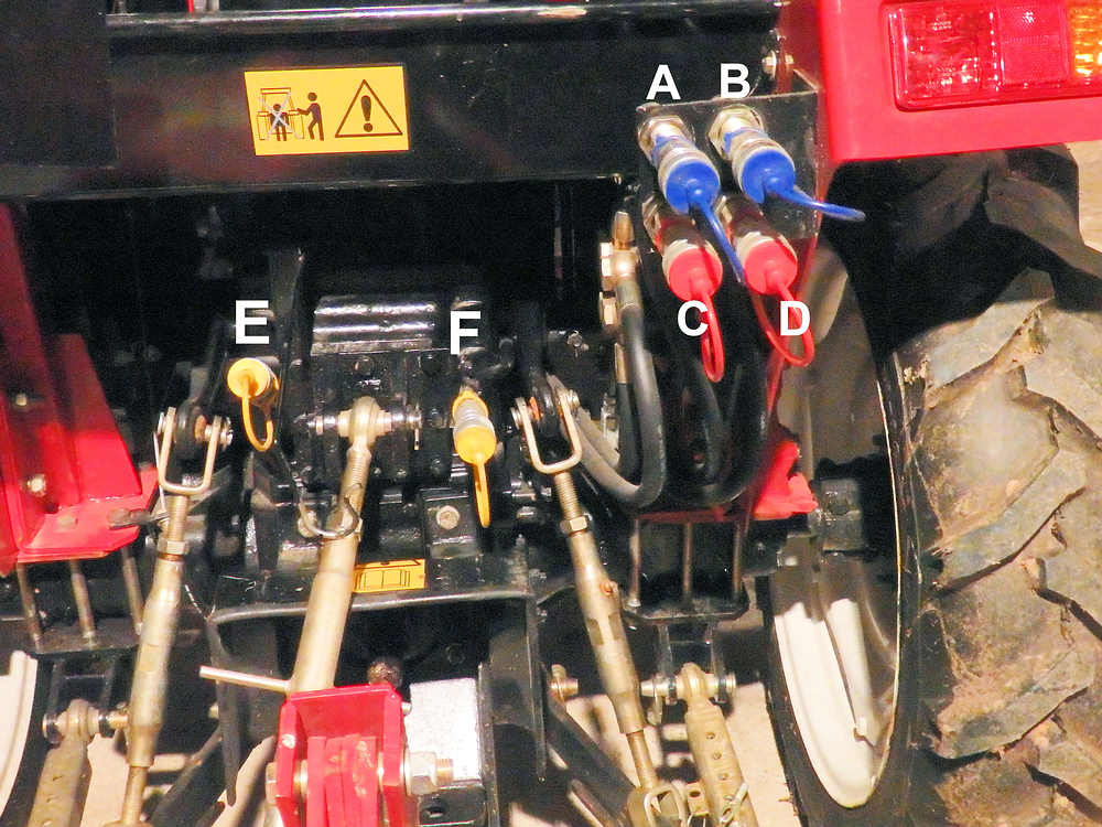 I think I have to use the yellow auxiliary connectors E & F, so do they have a continuous flow and therefore are these the ones to use? I read on one forum that it is necessary to close the flow valve under the driver seat to stop the 3 point lift from working and for the auxiliary connectors to work? Has anyone used a similar wood chipper and can give me some pointers if this the case with the 204E?
