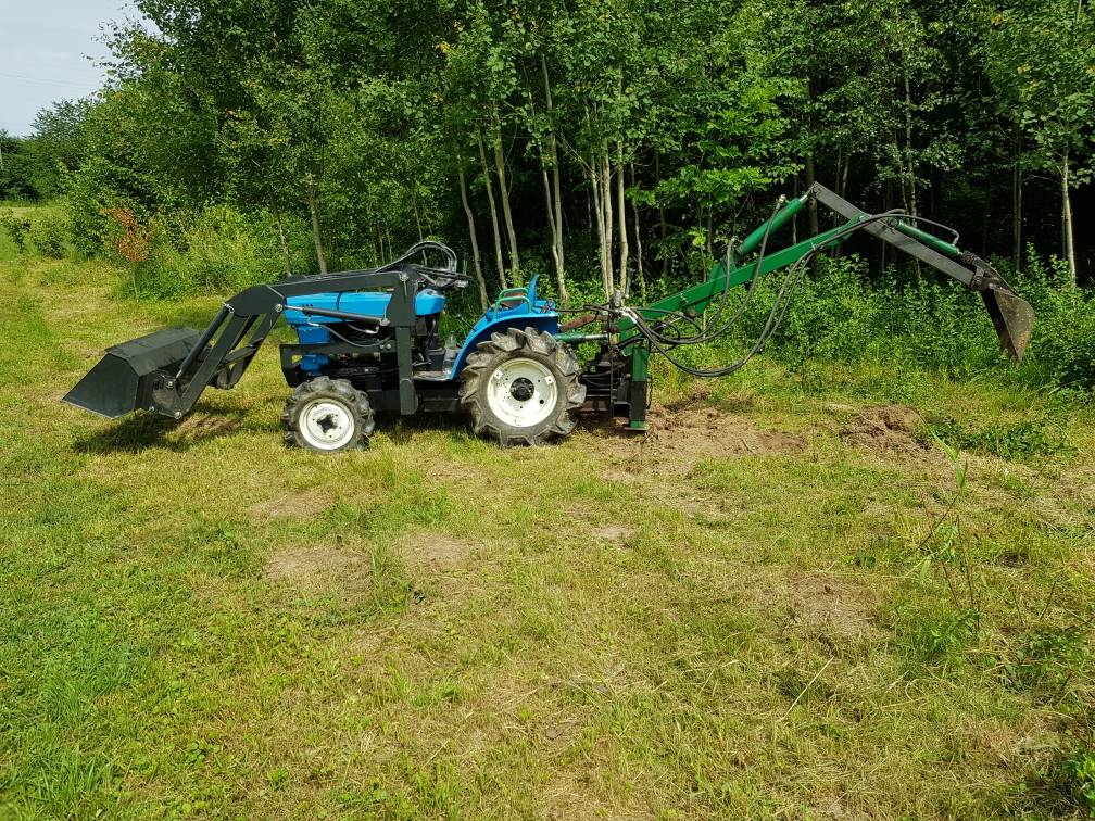 The project itself was finished ok, but i found that the combination of small tractor and also small back-hoe is just too light to do real work in heavy, dense ground. A pile of sand is easy enough, but to dig a 1 meter hole in the dirt we have here is not as easy as i thought. Even when i put some extra weight in the FEL, it's still hard to get the spoon into the ground really deep. I will try to find some photo's of how this thing looks...