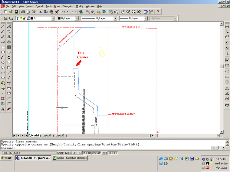 I have attached a view of my property all plotted out on AutoCad by my surveyor. My property is the 9 sided lot in blue that looks kind of like the state of Nevada.