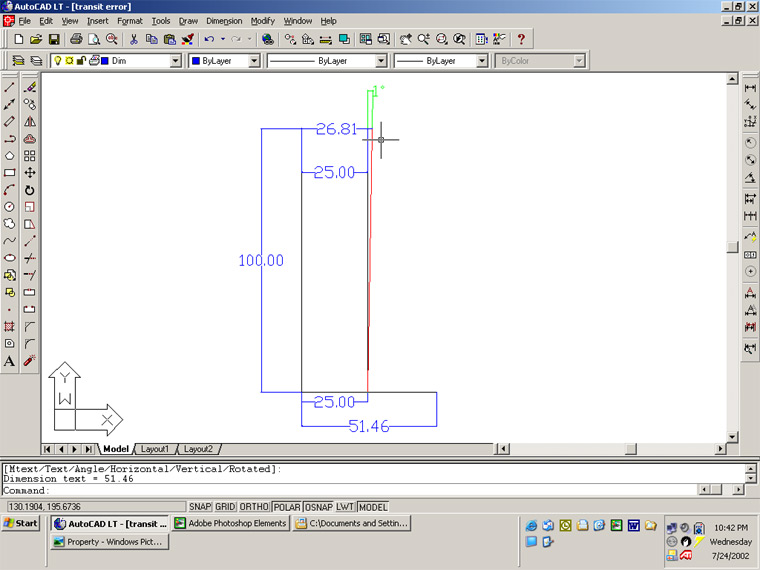 Then I went from 90 degrees to 180 and so forth. So I went back inside and plotted it out on AutoCad (file attached in next post). I turns out that being 1 degree off at 100 feet is a difference of 1.81 feet. That is pretty much what I was coming up with on my own.