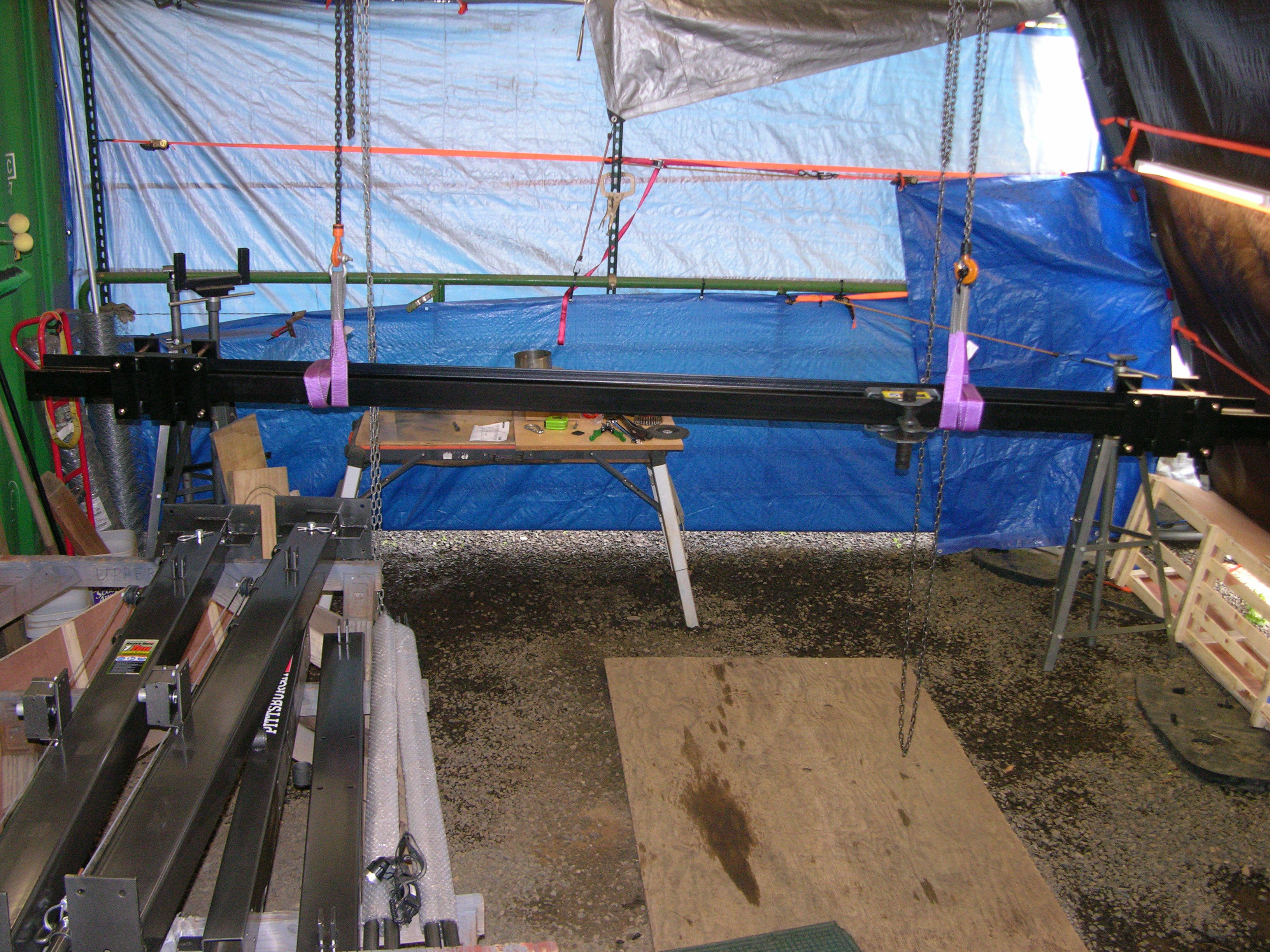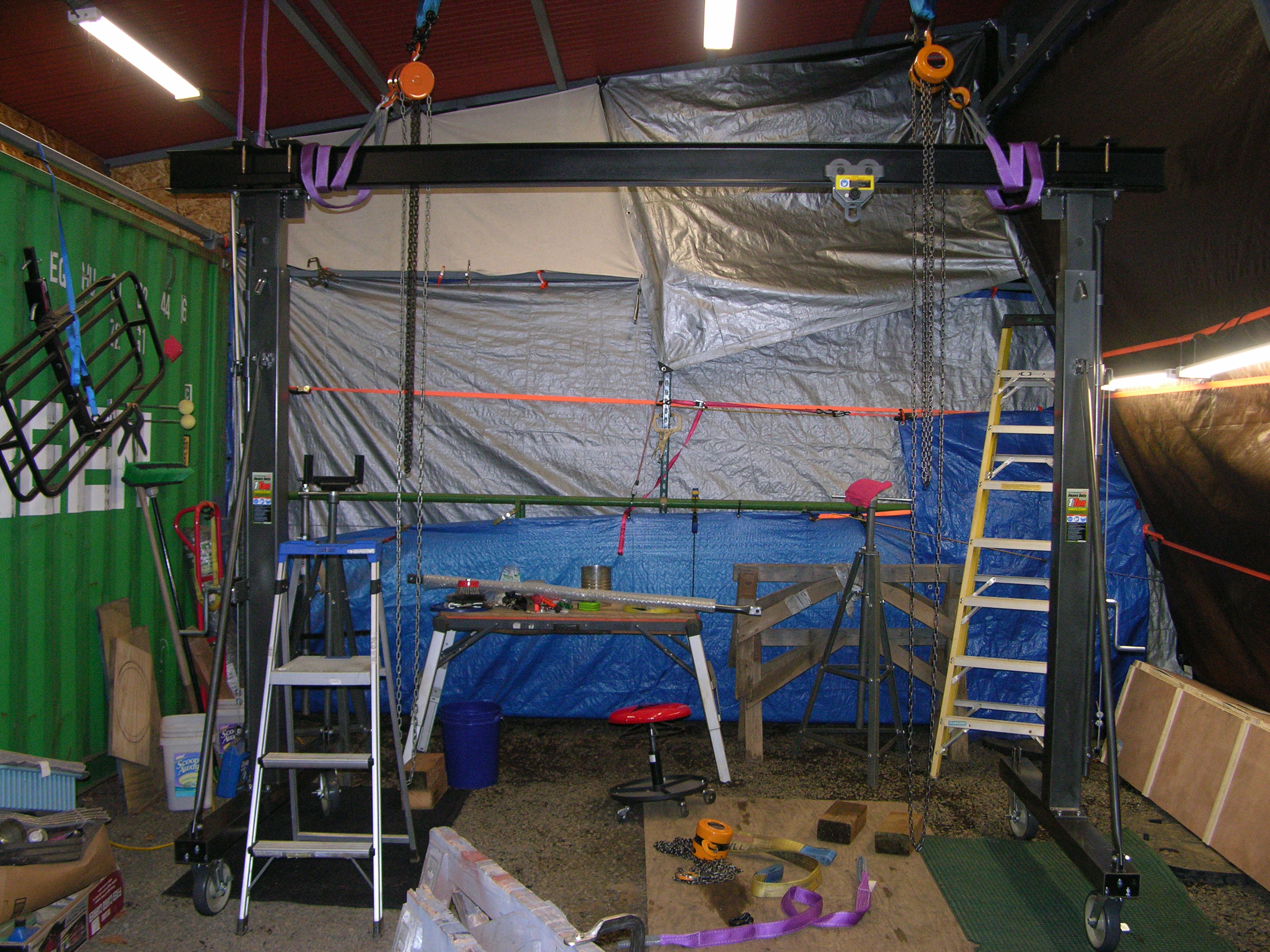 So it's a good thing I have my OWN "helpers", including several straps, shackles, 3 or 4 chain falls, blocks, sawhorses, etc... That's just the "teaser", but as the news liars say, "Pics at eleven" :laughing: ...Steve