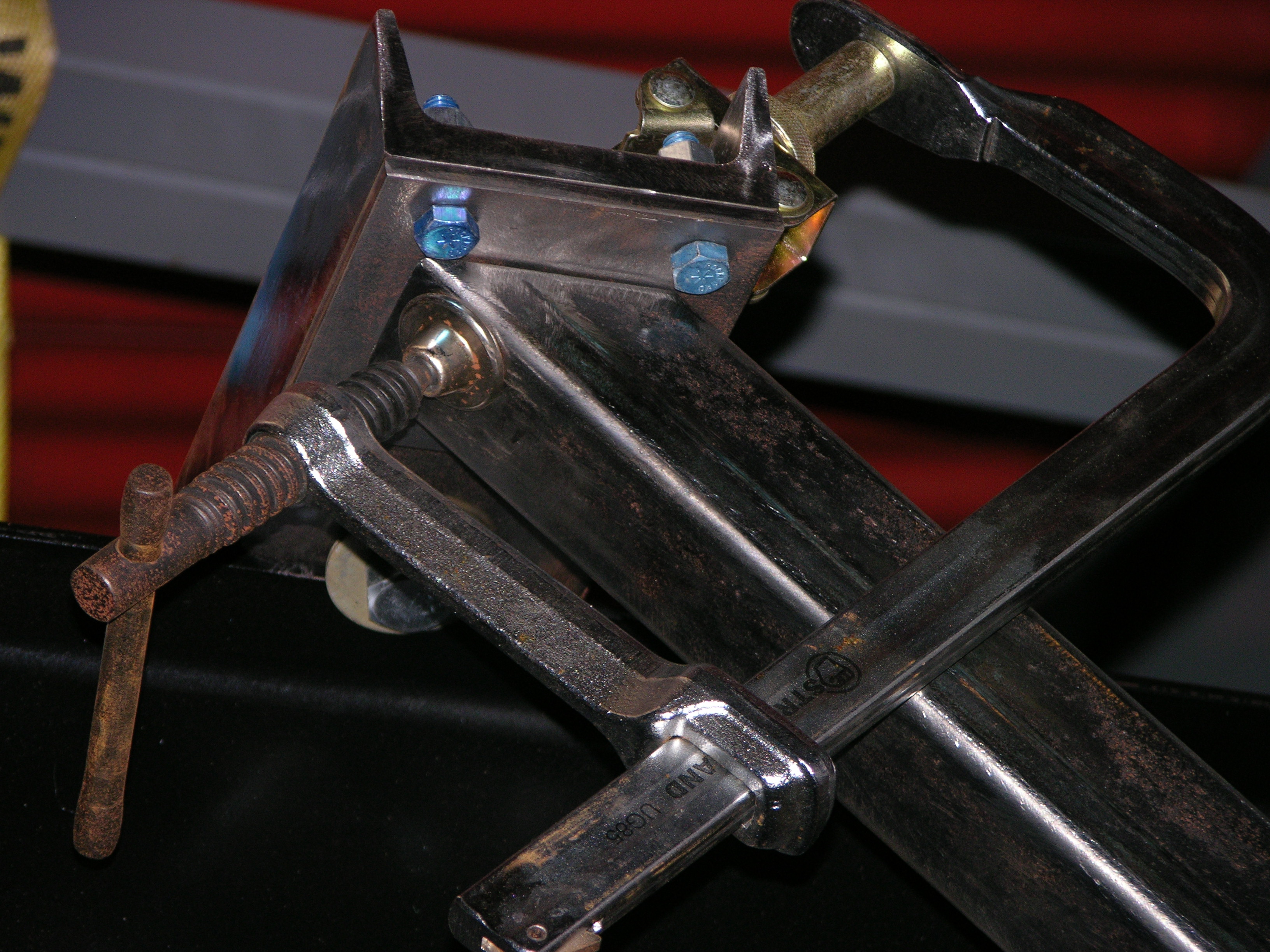 I wanted the mounting bolts as wide apart as possible to minimise any tendency to rock, but I got 'em a little TOO far apart, so the channel legs made it so the
