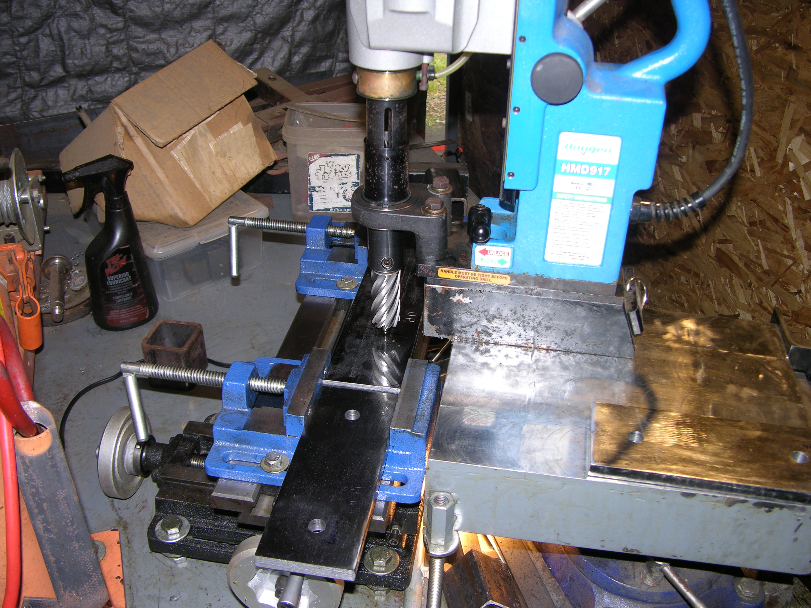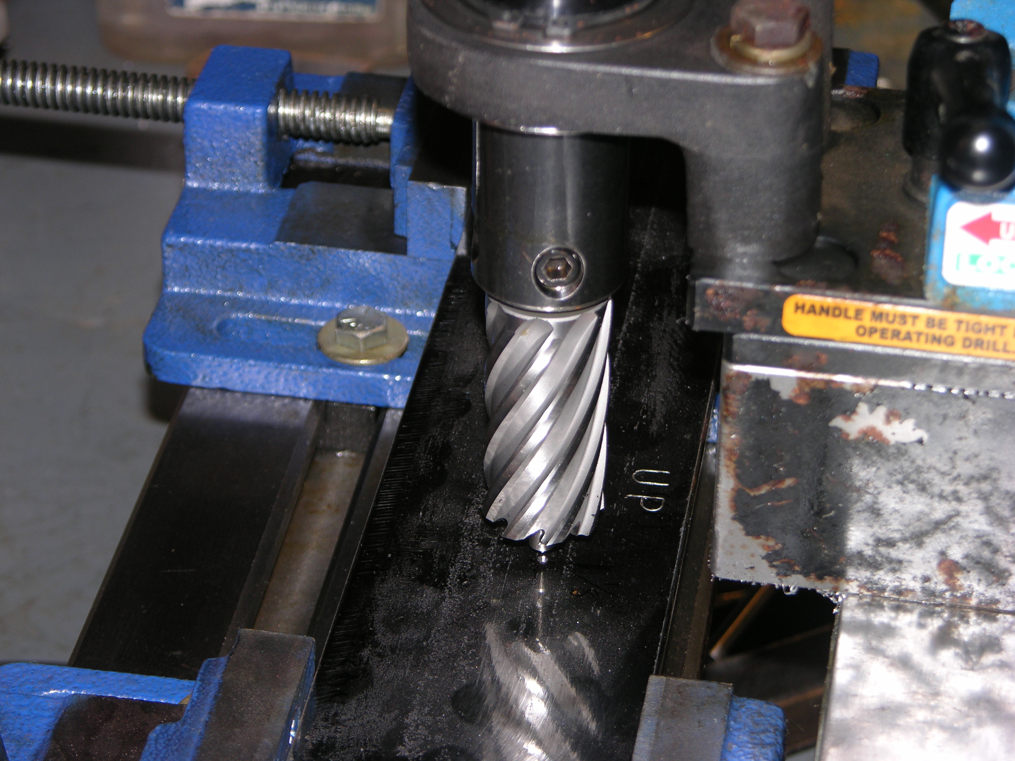 Used my XY table and the mag drill to make sure each hole is where I need it - DSCN3243.JPGDSCN3244.JPG - notice in the second pic that the point of the mag cutter's pilot is directly over the punch mark...